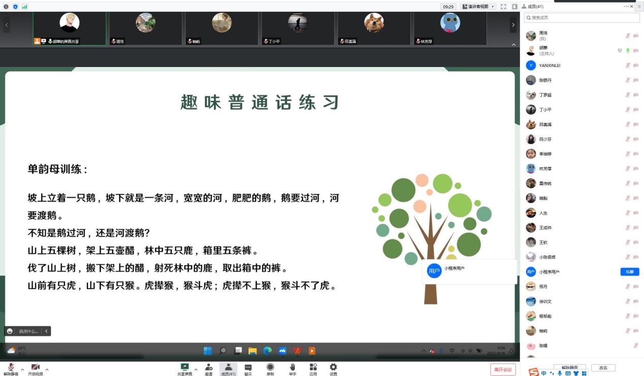 在老师们的指导下,同学们进行了全国推广普通话宣传周介绍、学习普通话发展历程、趣味绕口令等多种活动,认真学习,踊跃发言,深刻有效地达到推广普通话宣传周的目标。通过此次活动,同学们认识到了我国是多民族、多语言、多方言的人口大国,推广普及普通话有利于增进各民族各地区的交流,有利于维护国家统一,增强中华民族凝聚力,今后将从自身做起,运用普通话交流,多做宣传,提倡身边公民用普通话交流。