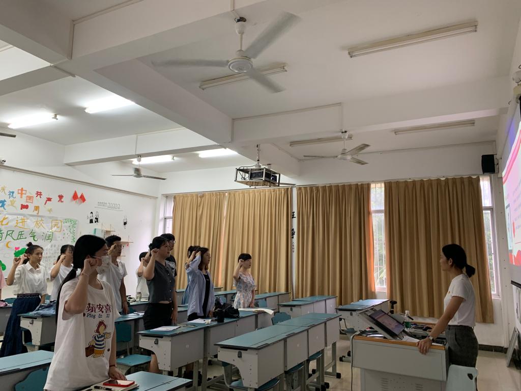 在课上,她带领大家学习了入党誓词历经五次修改的内容。在土地革命战争时期,誓词强调阶级斗争和永不叛党;在抗日战争时期,誓词内容新增了终身为共产主义事业奋斗;在解放战争时期,誓词依然强调忠诚永不叛党;在新中国成立初期,入党誓词明确反映出党执政地位得到了确定;最后一次修改誓词内容在1982年党的十二大召开,将永不叛党重新写入誓词内容,把忠诚赋予了新的意义,提到了新的高度。