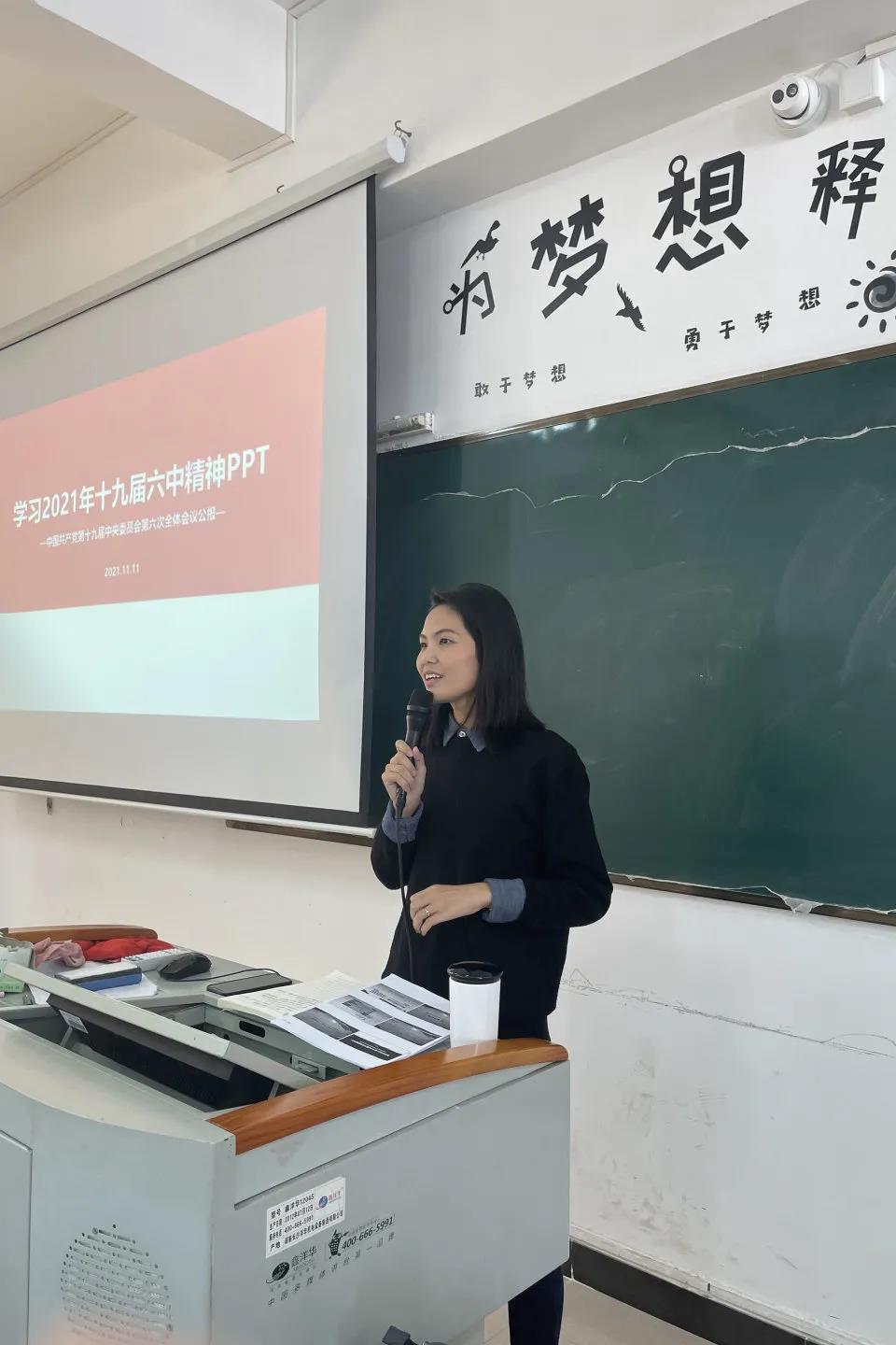 她指出,党的十九届六中全会是在我们党百年华诞的重要时刻,在“两个一百年”奋斗目标历史交汇关键节点上召开的一次十分重要的、具有里程碑意义的会议。全会审议通过的《决议》,全面总结了党的百年奋斗重大成就和历史经验。作为社会主义的接班人,青年员工更加深刻得认识到在中国共产党领导下中华民族的伟大新征程必将取得辉煌的成果,青年学子要展现新气象新作为,勿忘昨天的苦难辉煌,无愧今天的使命担当,不负明天的伟大梦想。