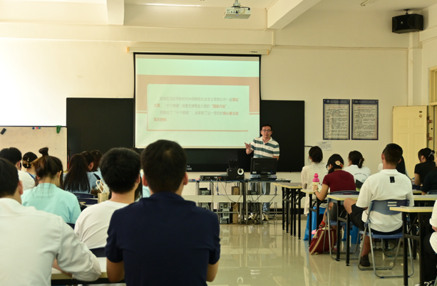 樊靖老师为大家作题为《党的伟大精神》的专题党课。他带领大家全面学习领会习近平新时代中国特色社会主义思想的科学体系。从“十个明确”、“十四个坚持”、“十三个方面成就”、“六个必须坚持”四方面展开,指出作为员工党员,要发挥党员的带头模范作用,时刻保持思想的先进性,不断学习,挑战自我。