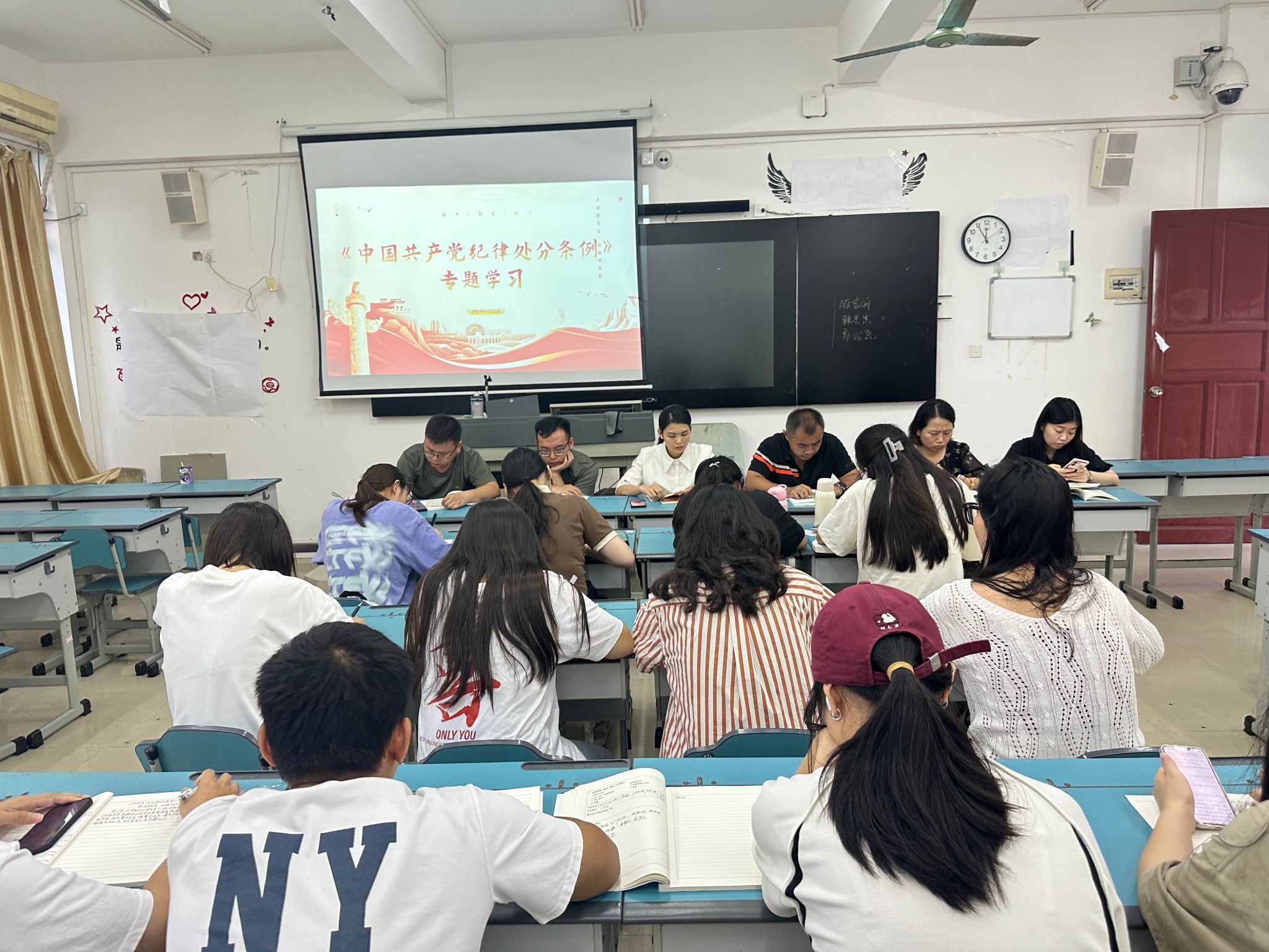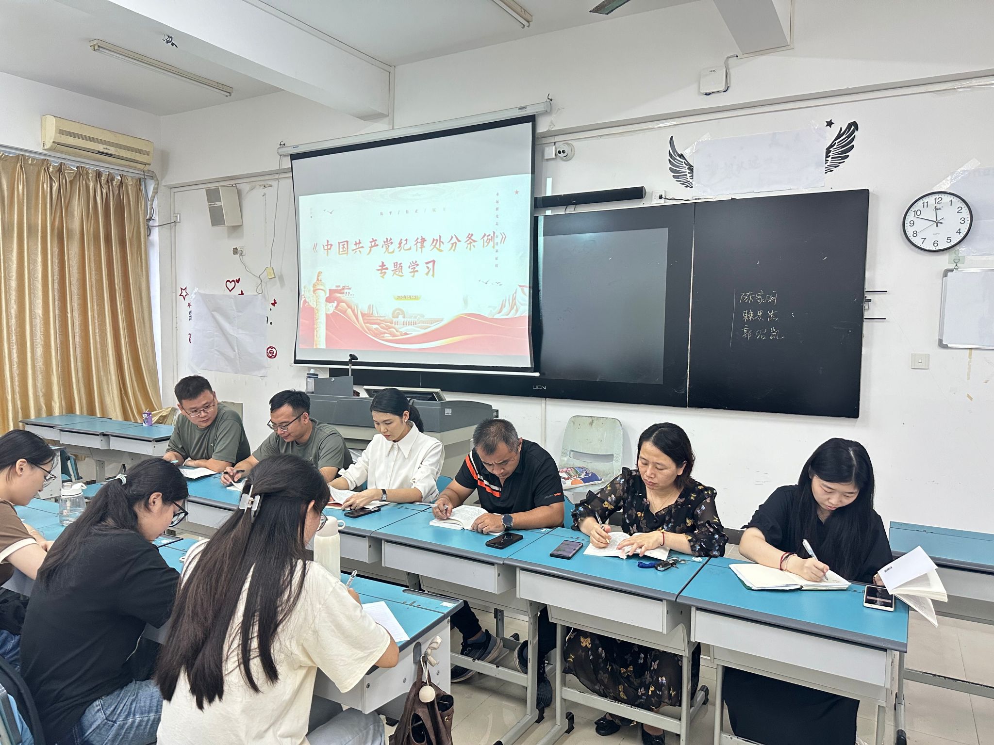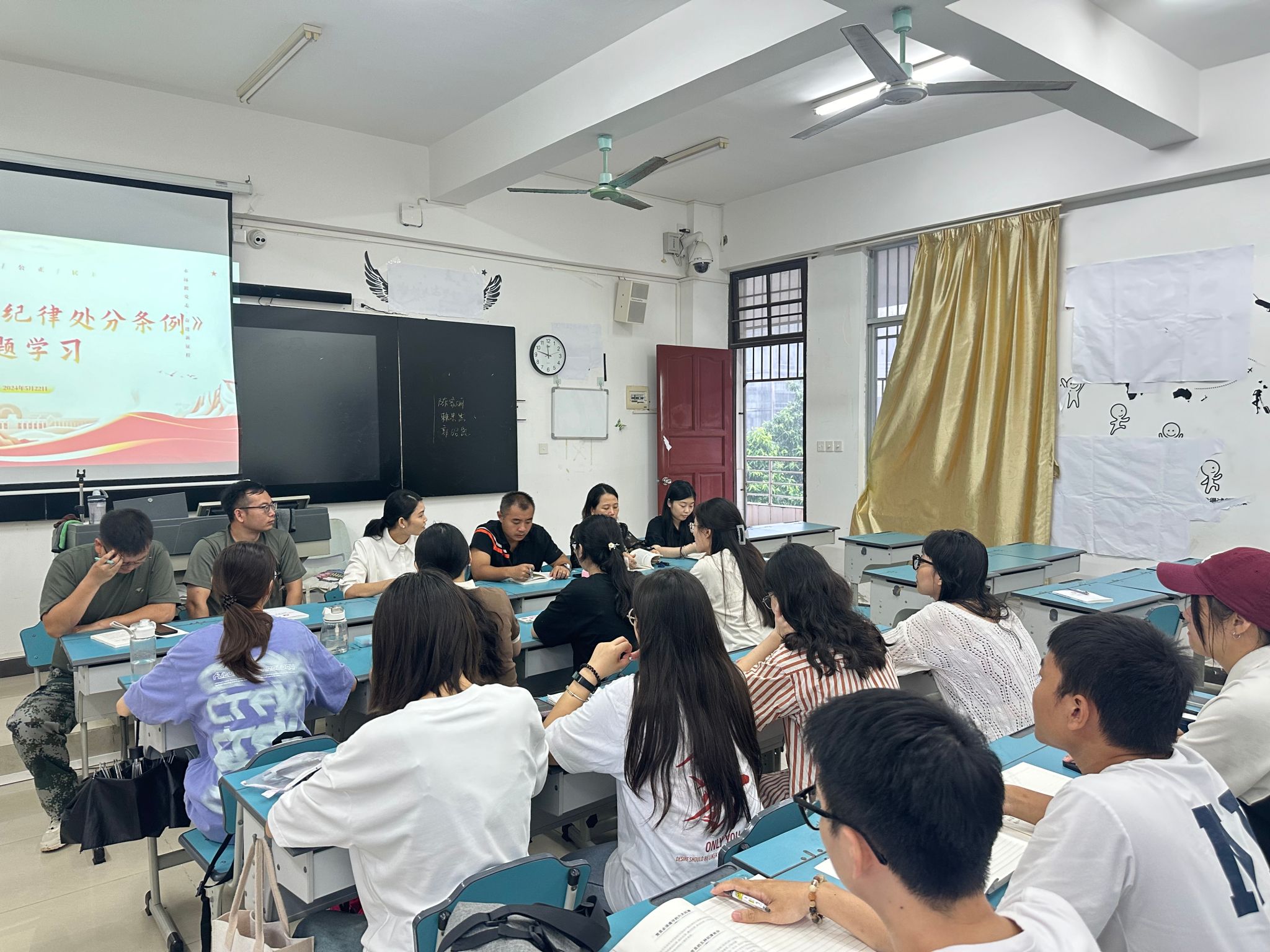 为进一步增强党员的纪律意识,筑牢底线思维,beats365官方唯一入口员工党支部在5月22日上午于2-504召开《中国共产党纪律处分条例》专题学习会,党总支副书记刘萍男、全体辅导员、员工党员参会,辅导员陈俊池领学。