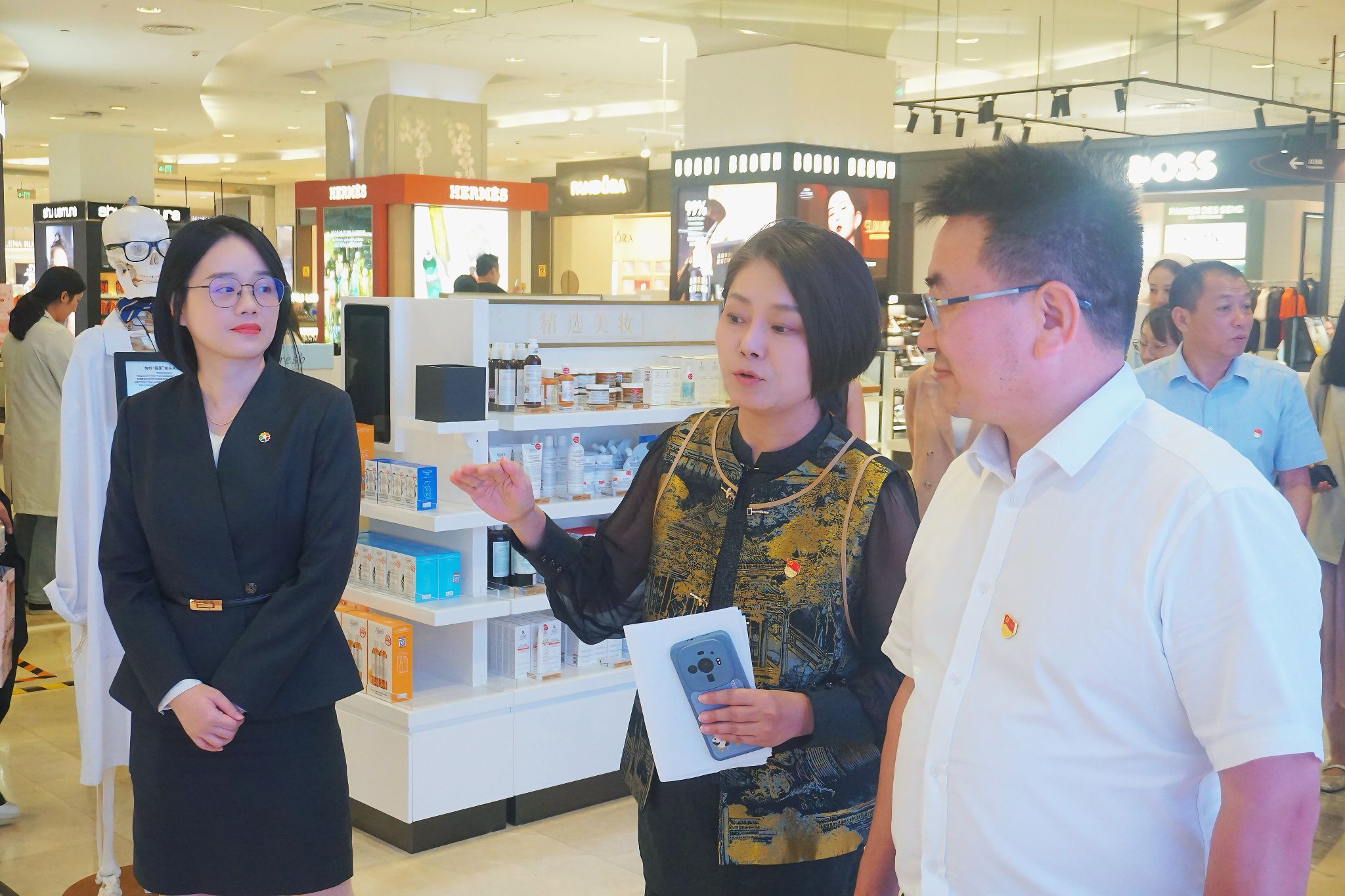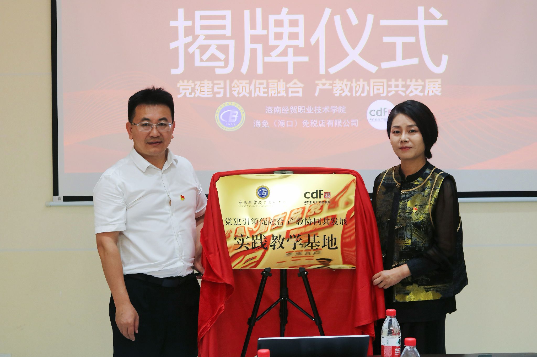 为推进产教融合、强化校企协同育人,2025 年 8 月 19 日下午,我校与海口日月广场免税店实践教学基地揭牌仪式暨座谈会在海口日月广场免税店举行。公司党委副书记、董事长崔昌华,日月店党总支书记、总经理郭莉莎,国际旅游公司党总支负责人及相关校企洽谈人员共同出席活动。会议由海口日月广场免税店第一党支部书记、总经理助理林珈羽主持。