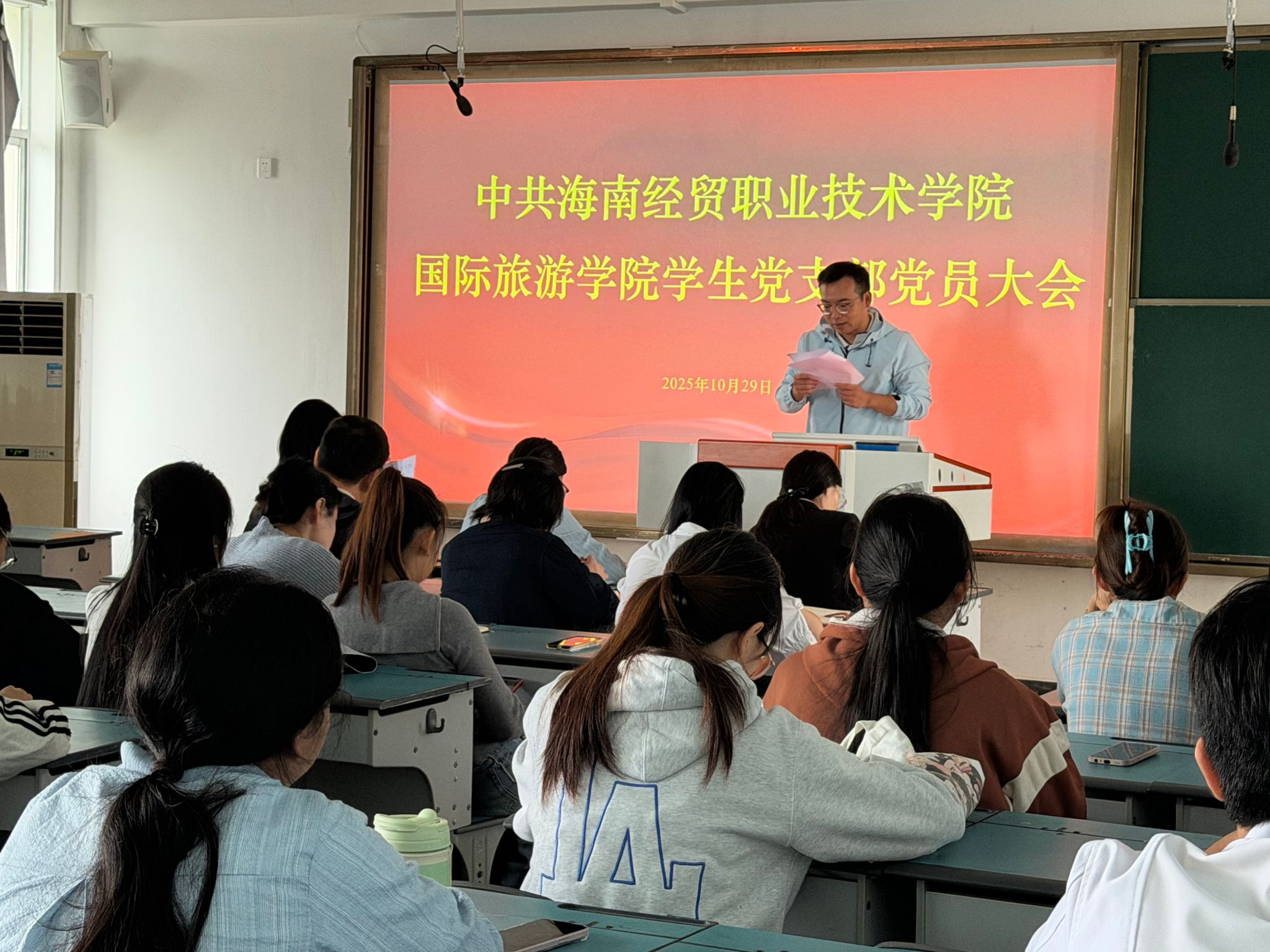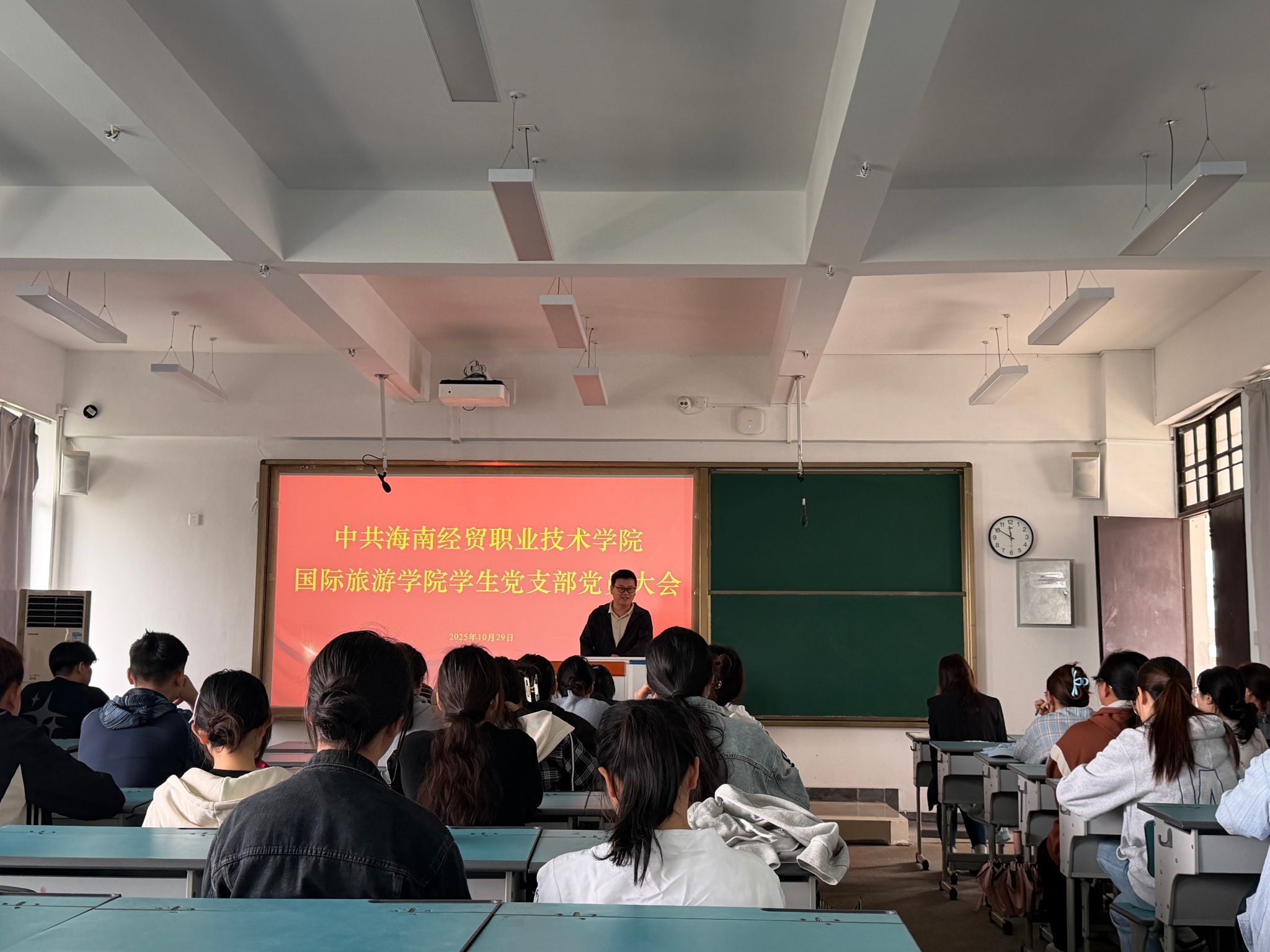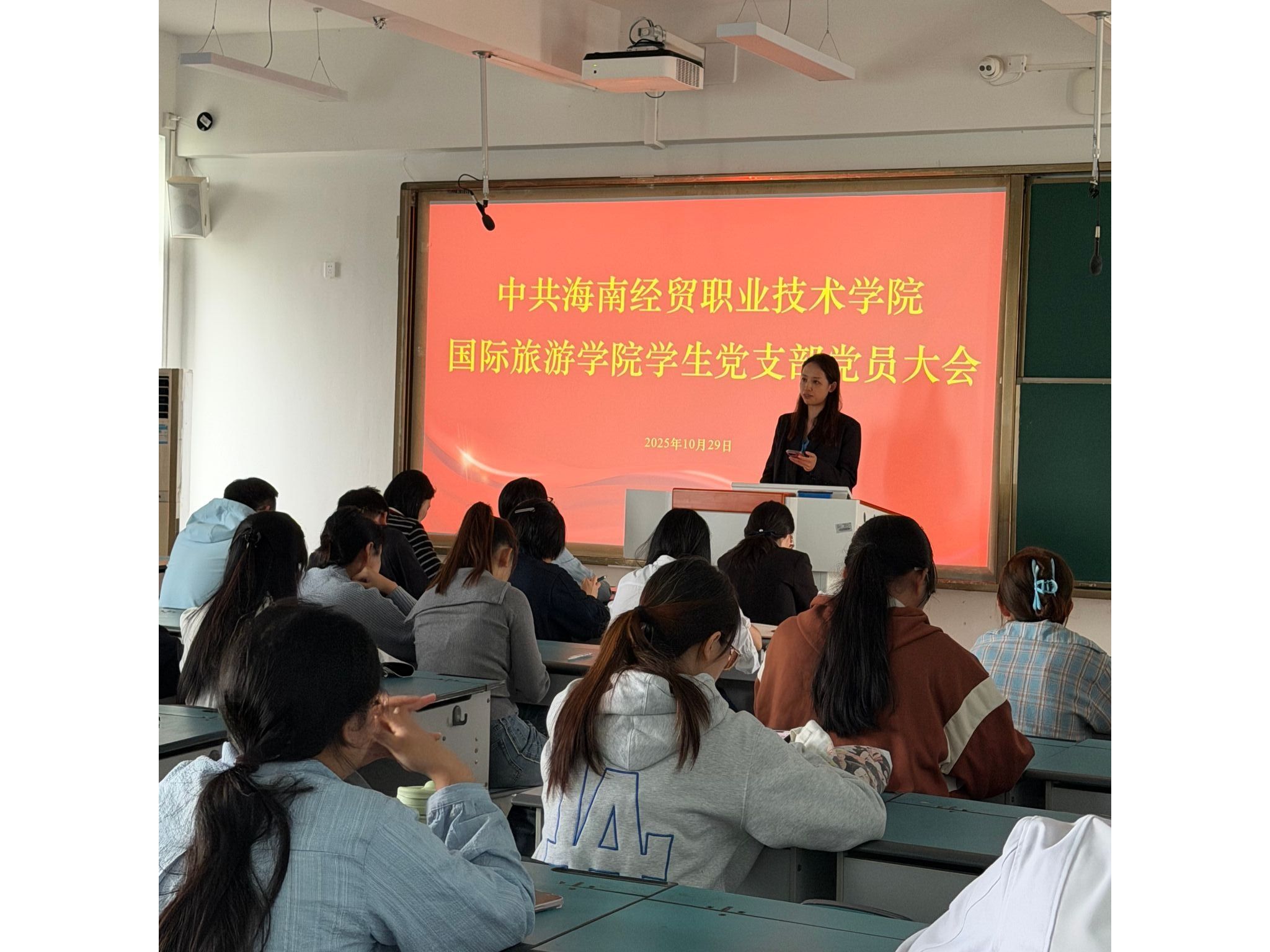 理论的价值在于指导实践。当日下午,支部将学习成果转化为实际行动,组织党员志愿者分队开展校园环境巡查与文明劝导,清理卫生死角,维护公共秩序,以“爱校于心、爱校于行”美化育人环境。晚间,由党员、入党积极分子和团学干部组成的宣讲团深入新生晚修教室,围绕重阳节的文化内涵与爱国精神的内在联系、新时代青年如何践行爱国主义、优秀学长学姐成长经历等主题开展宣讲,引导新生从入学伊始便扣好“理想信念”的第一粒扣子。