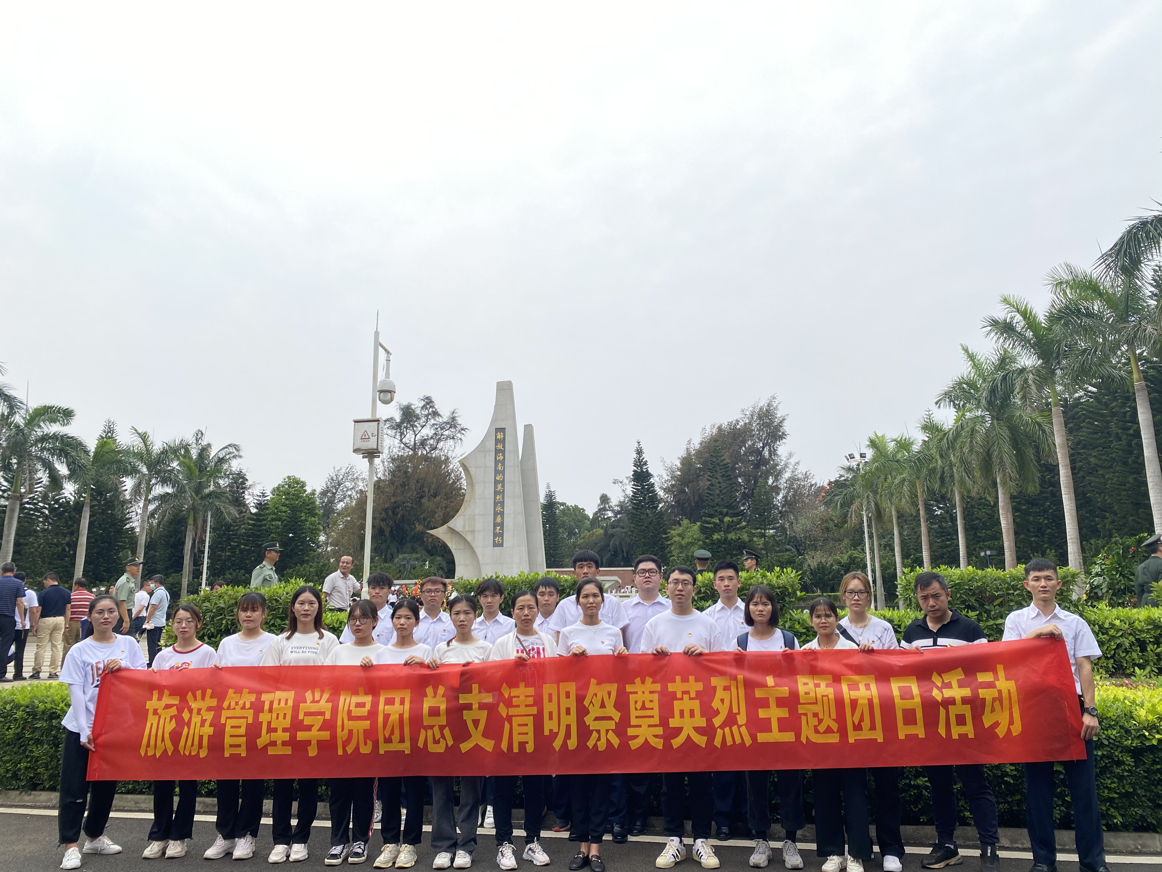 4月2日早8时,旅游管理公司党总支、团总支师生代表来到解放海南岛战役烈士纪念碑前,举行“缅怀先烈,薪火相传——清明祭英烈”主题党日、团日活动。旅游管理公司师生代表向解放海南岛战役烈士纪念碑敬献花篮,表达对海南岛解放战役中英勇献身的革命先烈们无比崇敬和深切缅怀之情。