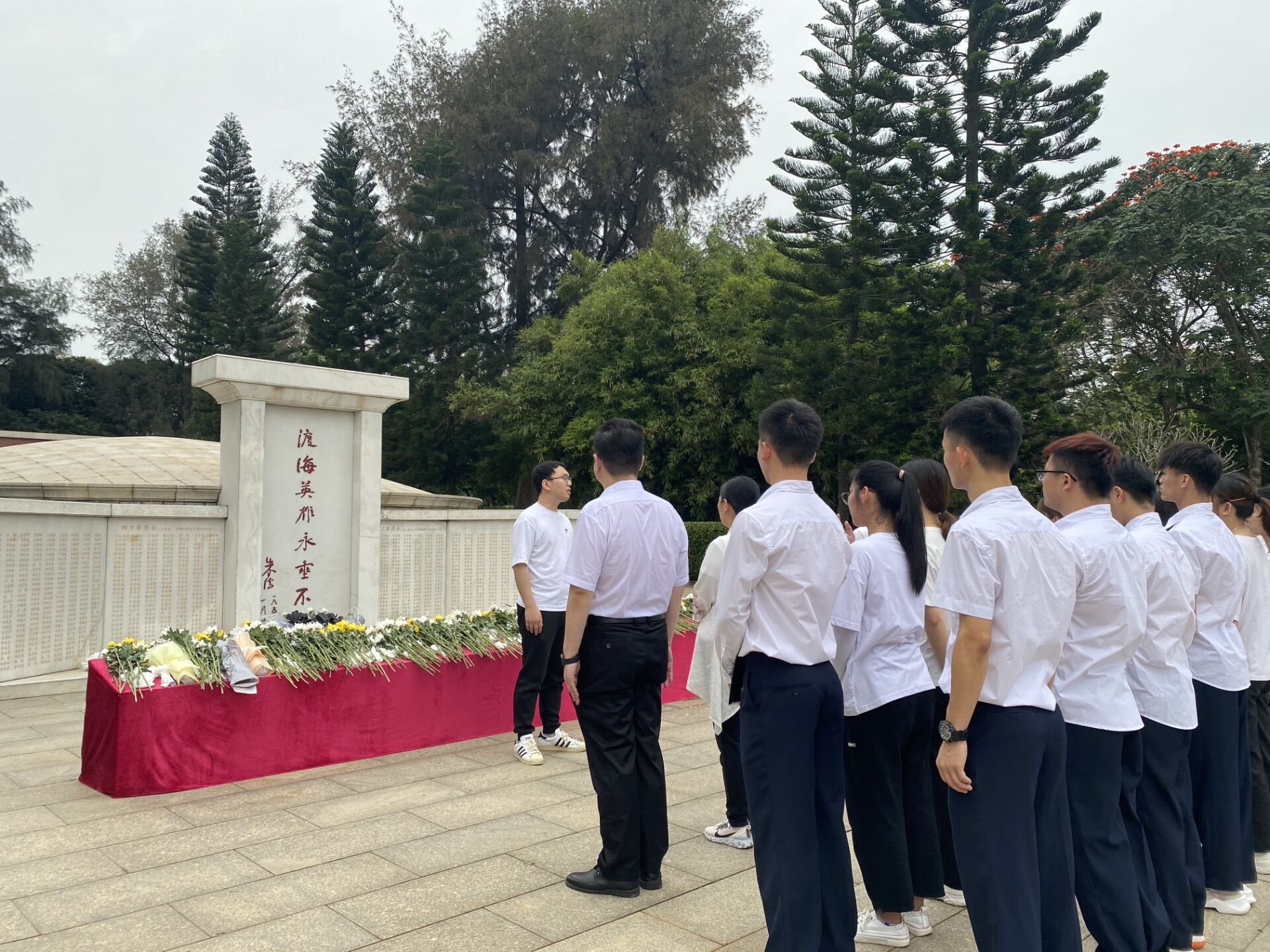 之后,师生代表向解放海南岛战役烈士公墓致敬默哀,并由张强简要介绍海南岛解放战役中先烈的英勇事迹。