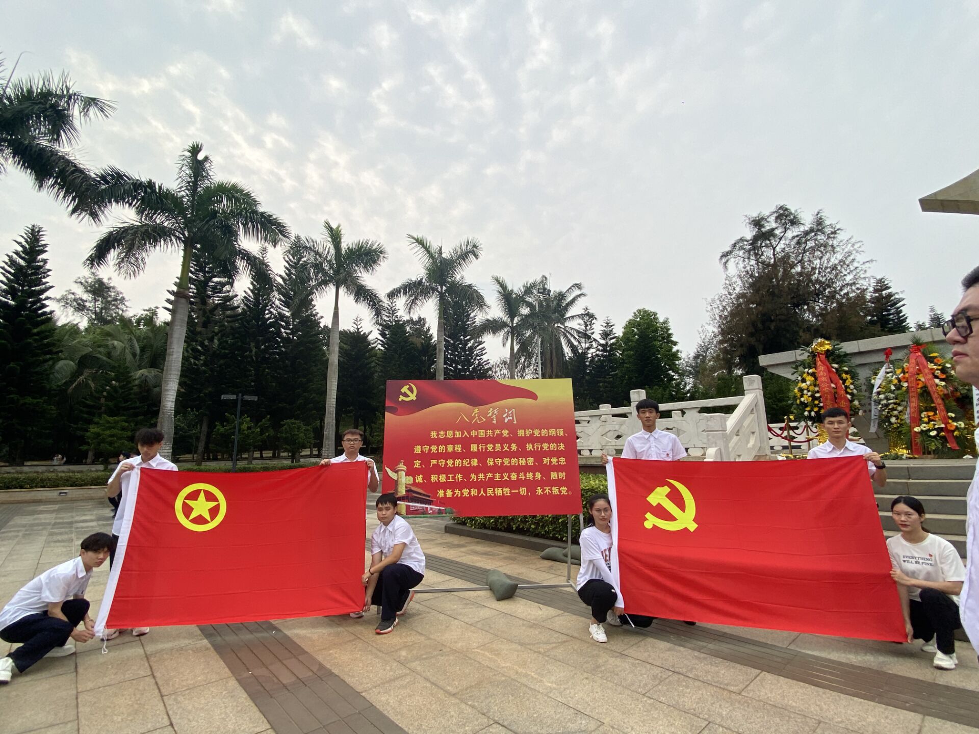 旅游管理公司副书记刘萍男、学工办辅导员符珍、陈俊池、张强以及二十位员工党员代表、团员代表参加公祭活动。