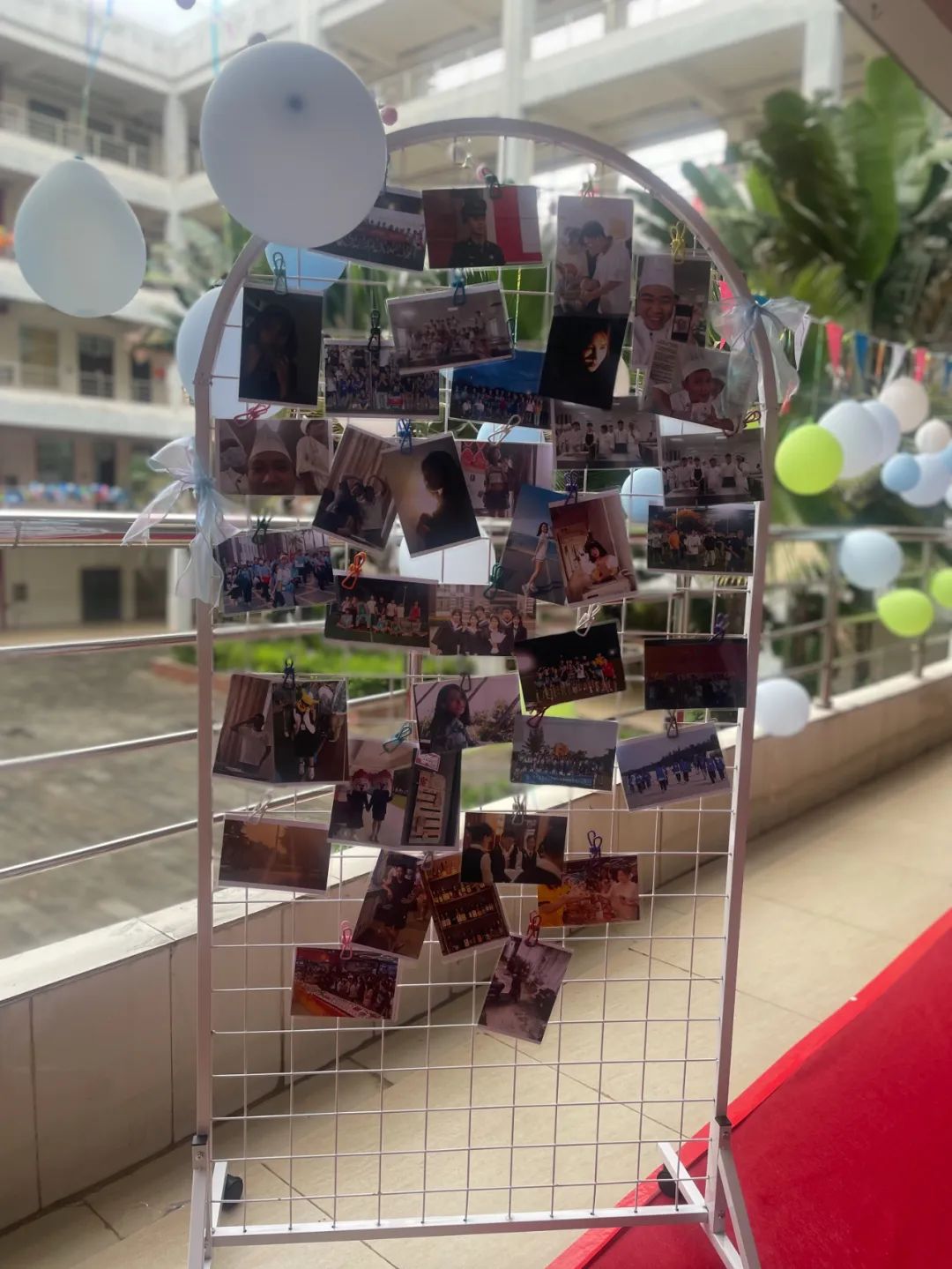 在毕业典礼活动的现场,志愿者们忙绿的身影,还有毕业生在写字板上留下自己的名字,照片墙上,是毕业生们从青涩到成熟的见证。