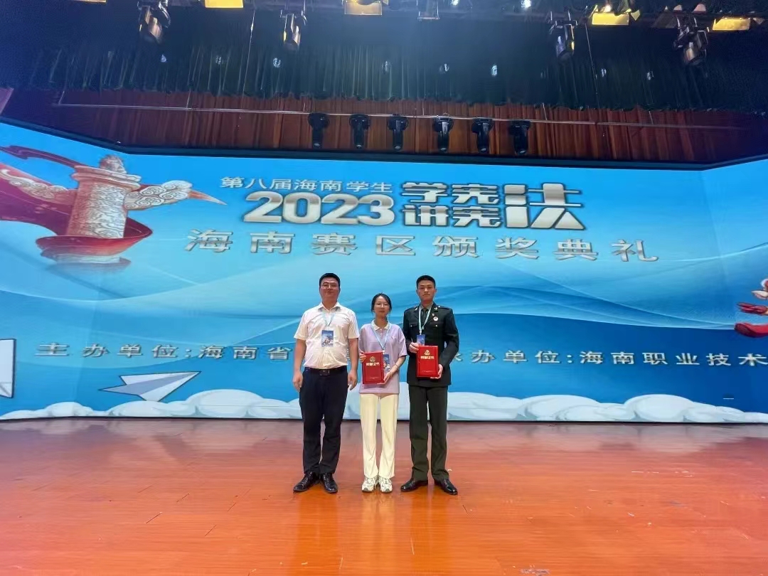 近日,beats365官方唯一入口选送的22级旅管1班黑梦瑶同学,在海南省教育厅主办的第八届海南员工2023年“学宪法 讲宪法”比赛中荣获素养竞赛高校组一等奖。