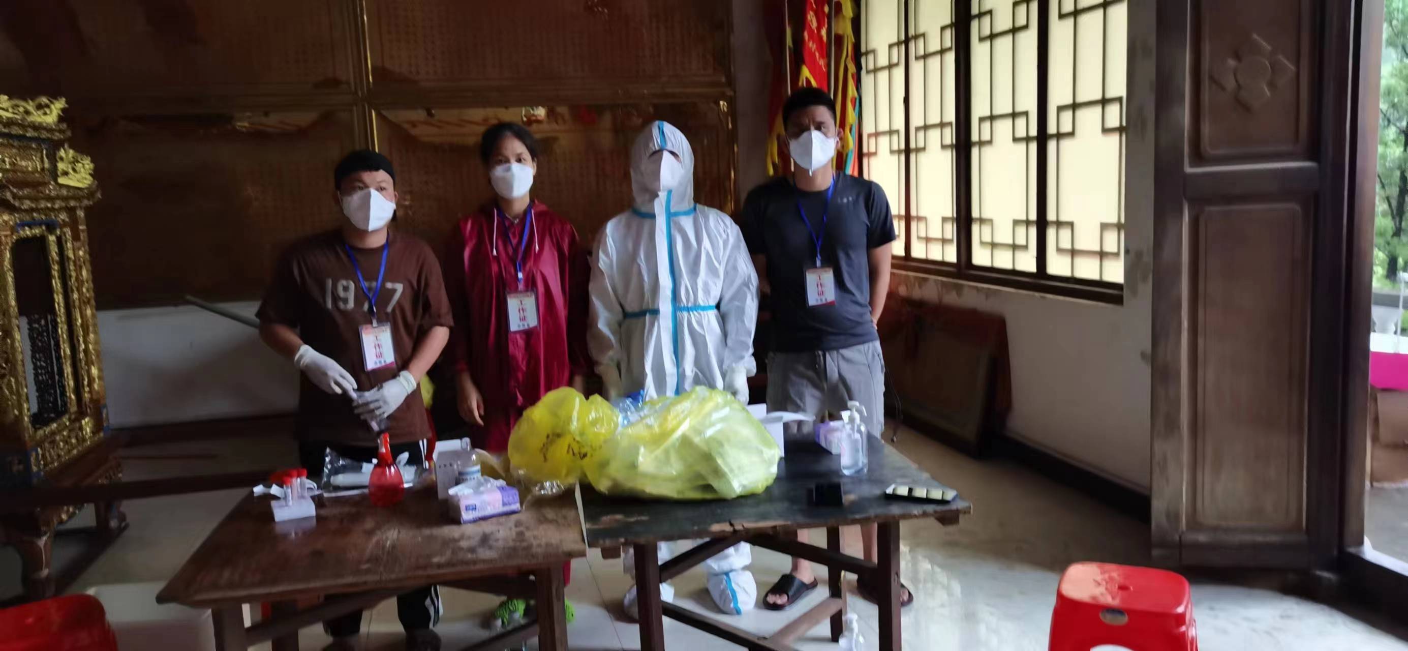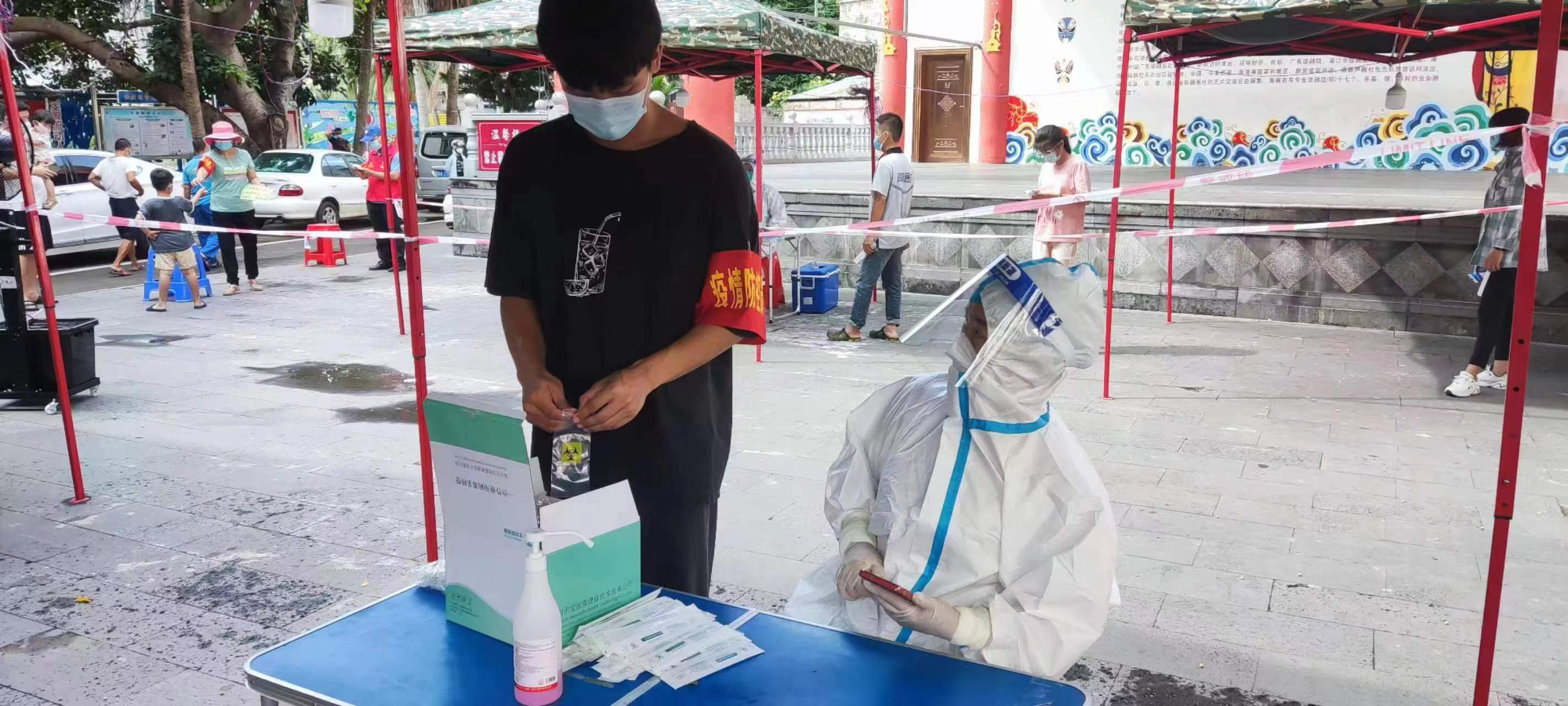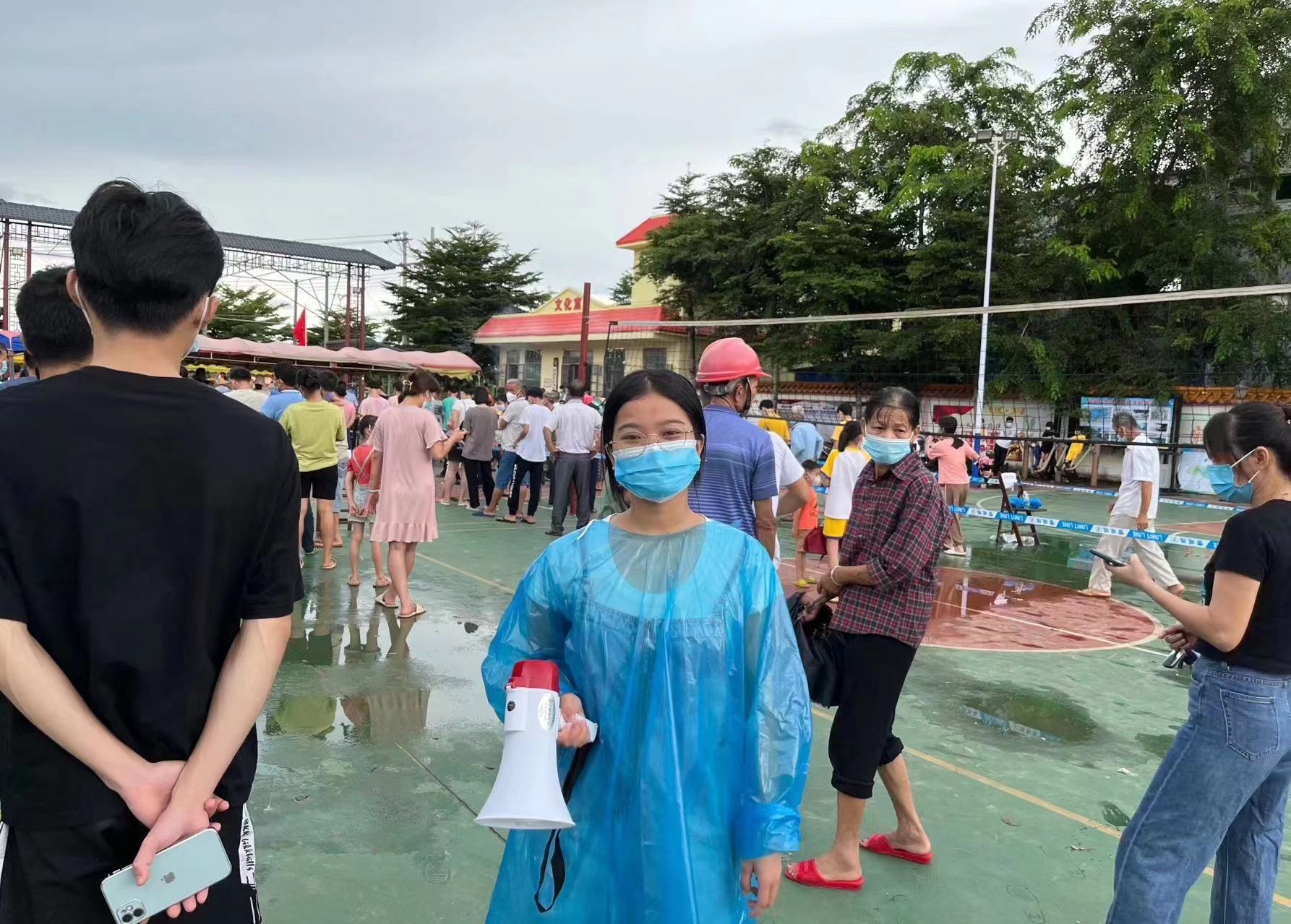 ▲21级旅游管理本科二班陈华杏在儋州市白马井镇当志愿者协助核酸检验
