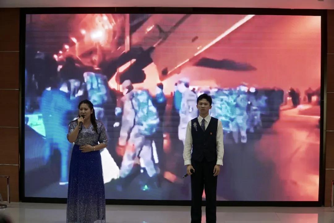 员工组比赛,由公司2021级新生钟华、江亚军携手,以一章《我看见》,让大家看见了疫情期间武汉城乃至全国在红色精神熏陶下的所作所为和一场场防疫巨变,江亚军同学用地道的武汉方言诉说了这段故事,让我们都能看见,那口罩后的青春脸庞,那平凡浮世中的逆流而上,还有那一场场沧桑巨变中留下的红色精神。倾诉出对党的感激,流露了对新一代青年强国的信心。