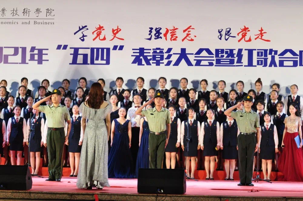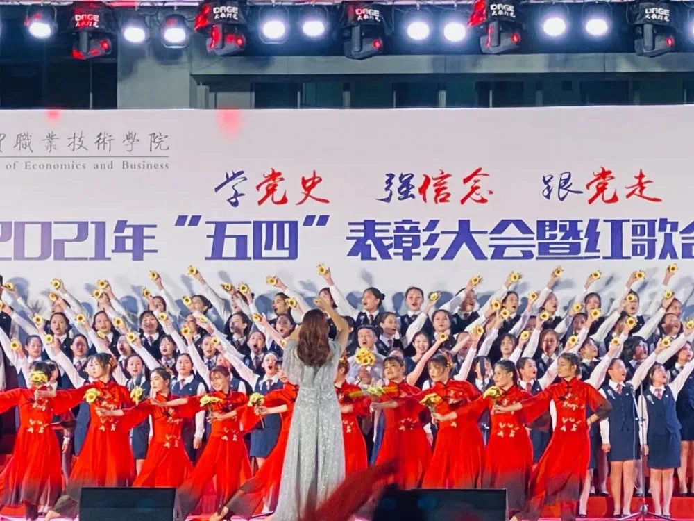 2021年5月7日晚,365官网体育2021年“五四”表彰大会暨红歌合唱比赛在经贸广场隆重举行。