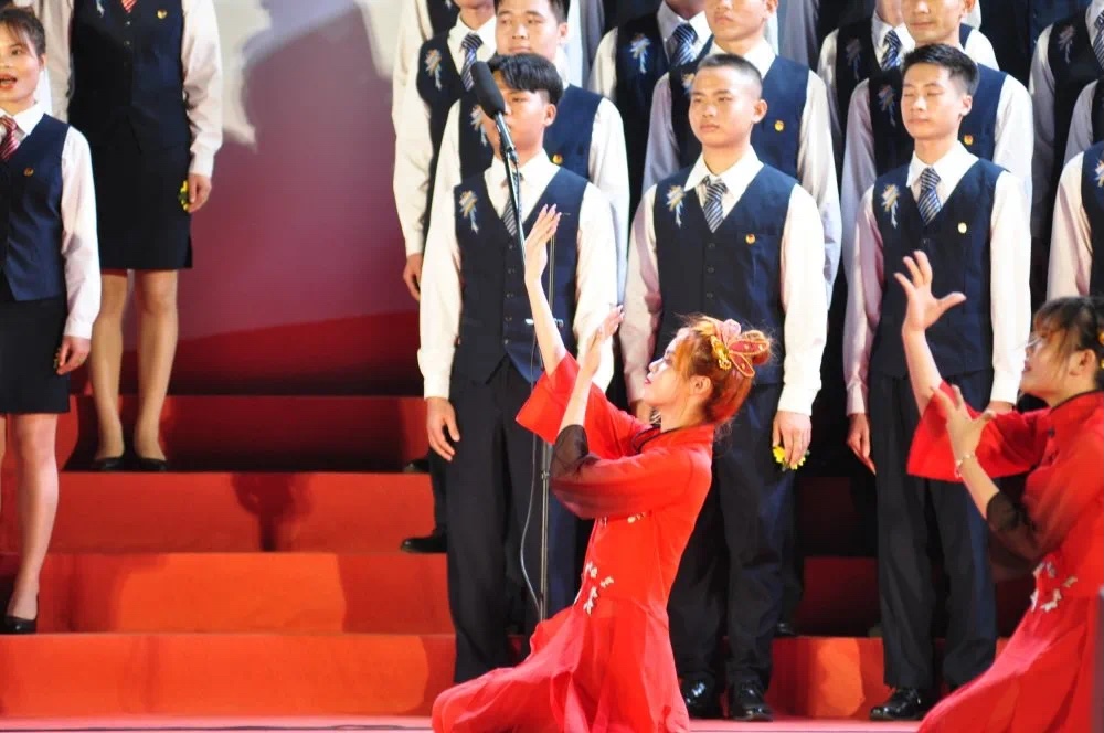 由150名员工组成的旅游管理公司合唱队参加红歌合唱比赛,以《边疆泉水清又纯》歌颂伟大边防军,五名老员工退役军人执党旗,以嘹亮的口号向伟大中国共产党致敬;以《在灿烂阳光下》共庆党的百年华诞,祖孙同唱抒发对党的无限深情。