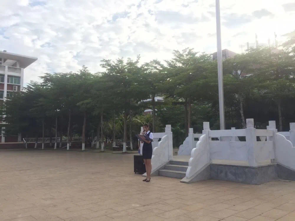 升旗仪式第二项,国旗下演讲。20级旅游管理本科一班刘欣怡同学的以《青春绽放,不说再见》为题,表达对自己未来的老员工活的美好憧憬和期待,同时预祝即将实习与毕业的学长学姐们前程似锦、未来可期。