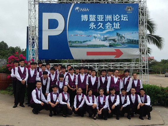 2014年11月30日9时30分,这是此次活动的最后一天。因为前一天已经把主要任务完成,所以这一天我们的心情感到轻松很多,重新以饱满的热情配合主管完成了所有的任务。吃好午饭后全体志愿者在带队组长的组织下拍照留念,庆祝我们这次顺利完成博鳌的工作任务。下午15时整搭上了返校的大巴,带着不舍离开了博鳌。18时整全体志愿者安全返校。