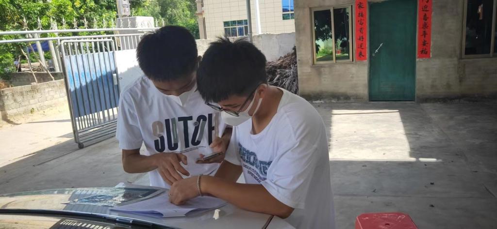 ▲21级市场营销二班王月江在临高县调楼镇当志愿者协助核酸检验