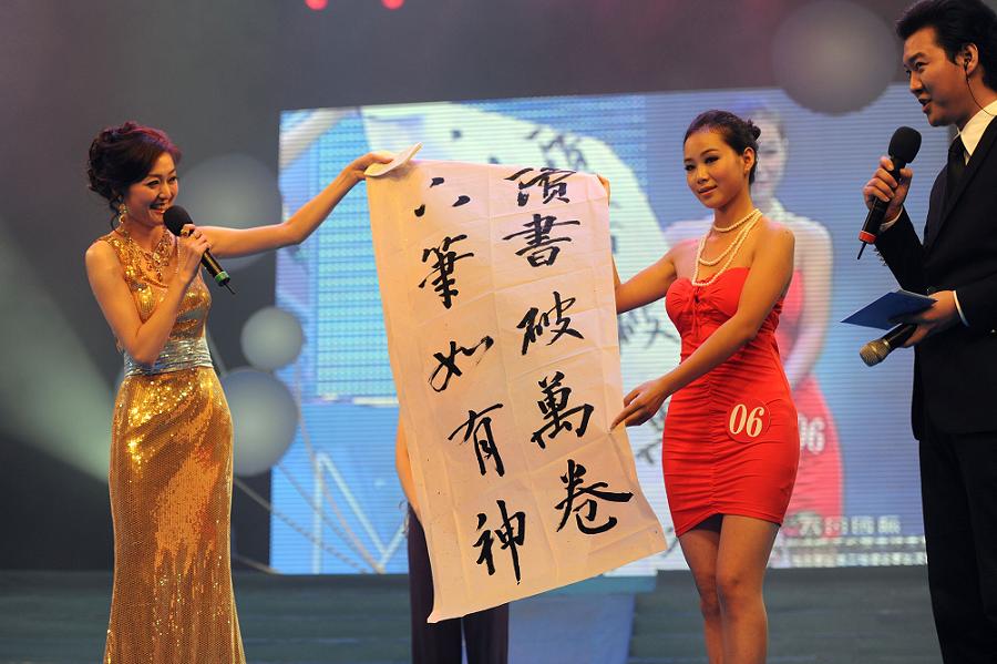 比赛是短暂的,训练却是漫长的;成绩是辉煌的,付出却是艰辛的。面对众多的参赛选手,张慧敏一方面感到了压力,一方面又激起了竞争的勇气,她在指导老师的安排下,刻苦训练形体、舞蹈和走台,尤其是穿着高跟鞋,一天好几个小时练下来,脚后跟都磨破了一层皮,疼的钻心,但她依然坚持了下来。在比赛当天,和她同台竞技的选手个子净高就在1米7以上,表现也同样优秀,但在才艺环节,张慧敏一笔秀丽的行楷“读书破万卷、下笔如有神”让全场折服,她深厚的毛笔字功底给评委留下了深刻的印象,谁都不曾想到,眼前这个文文静静的小姑娘能有像她的书法一样内秀坚韧的性格,最终,张慧敏力拔头筹。