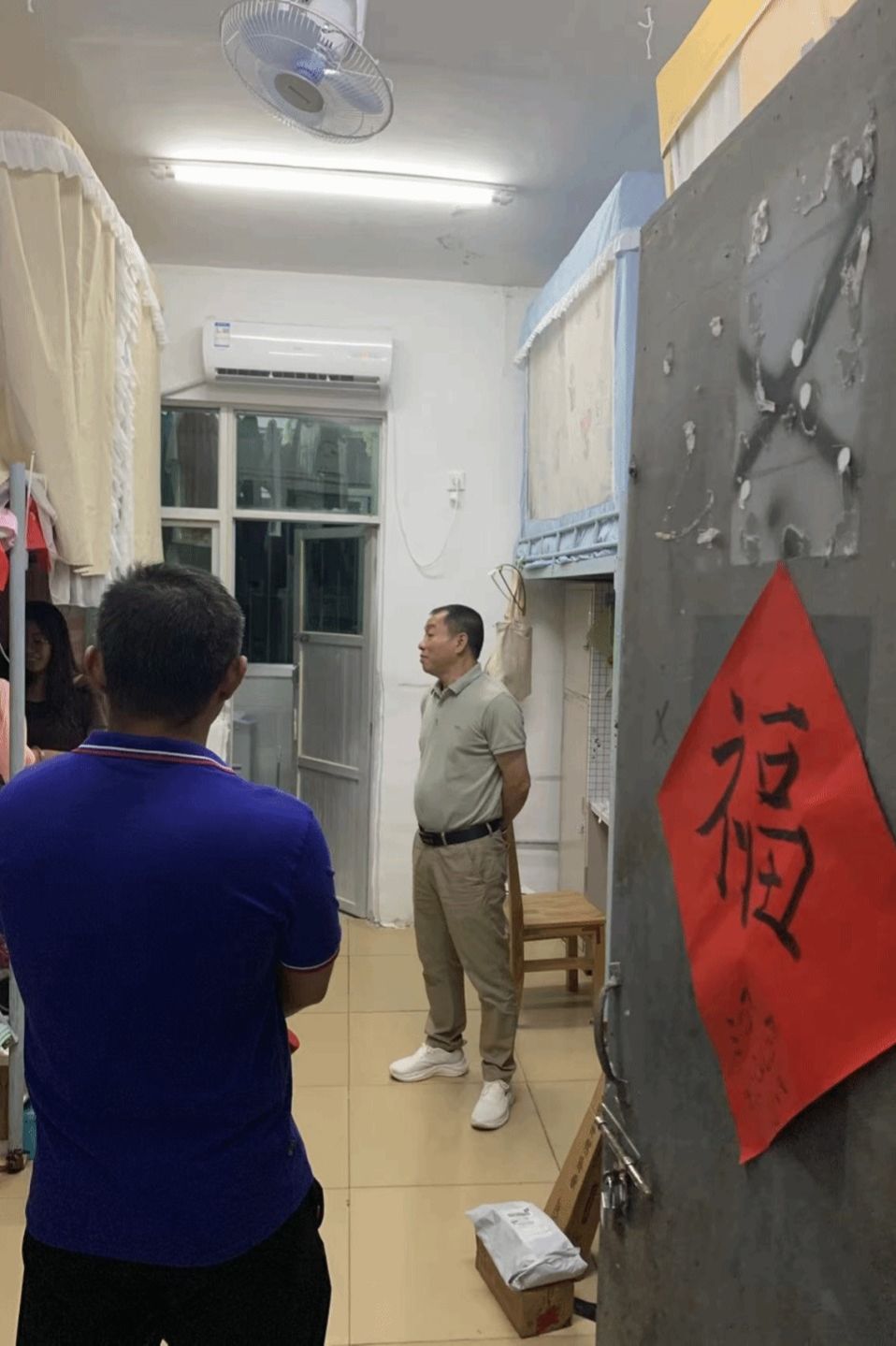 走访查寝过程中,孙金亲切地对员工进行问候,了解同学们在学习、生活中遇到的问题,实时为同学们答疑解惑、解决困难,并且提出宝贵建议。同时,提醒同学们要劳逸结合,关注身体健康与心理健康,鼓励同学们以更饱满的心态去面对新学期的学习和生活。提醒同学们在平常生活中务必注意财产安全、用电安全和人身安全,谨防诈骗。