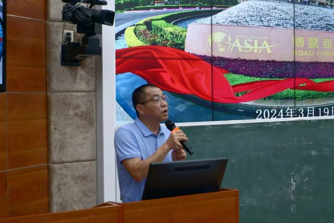 樊靖老师介绍了本届博鳌亚洲论坛年会志愿服务的总体安排和师生志愿服务队组织与筹备情况,并宣读第十五届志愿服务队队长任命决定,强调志愿服务的注意事项与纪律要求。