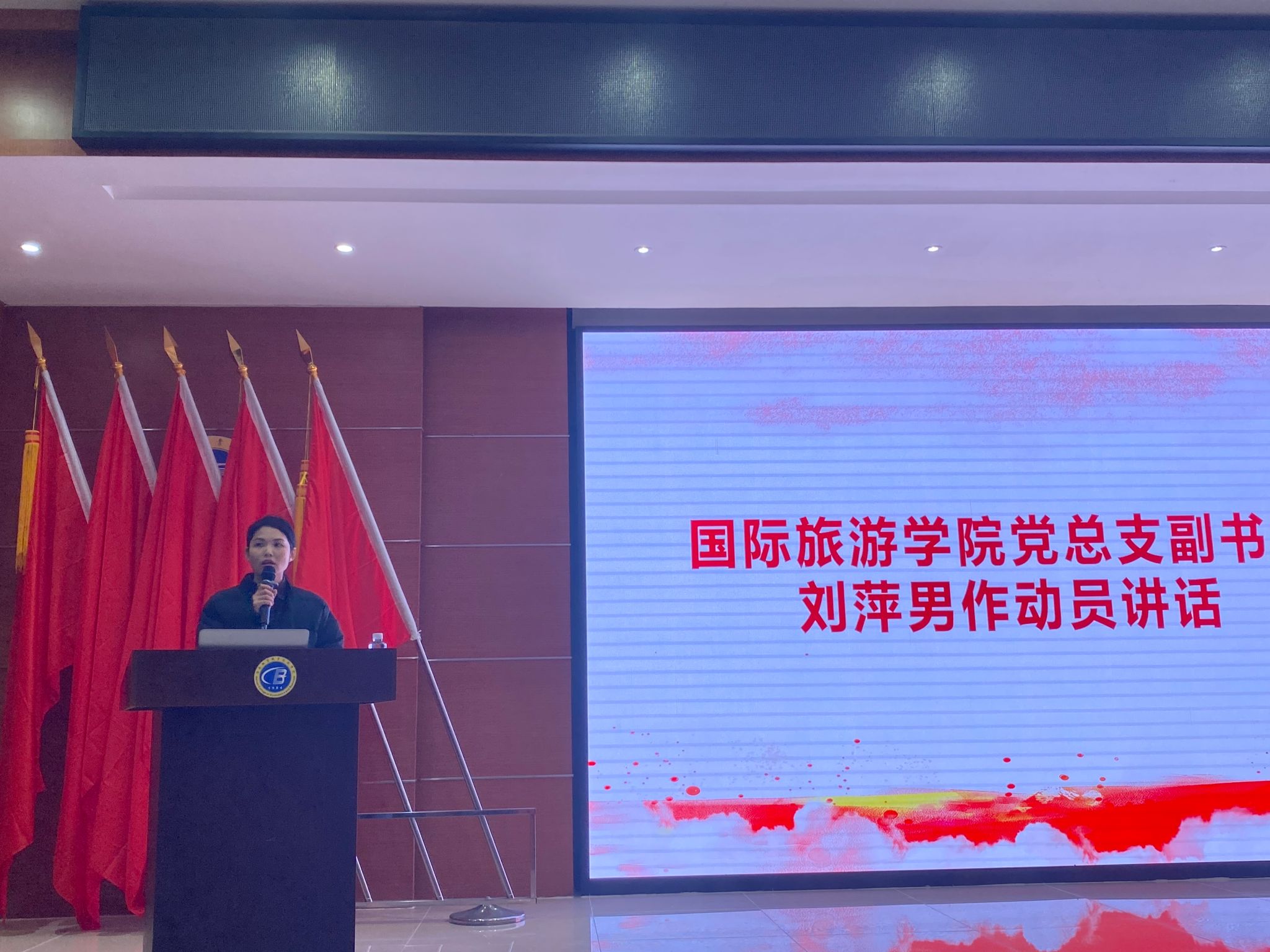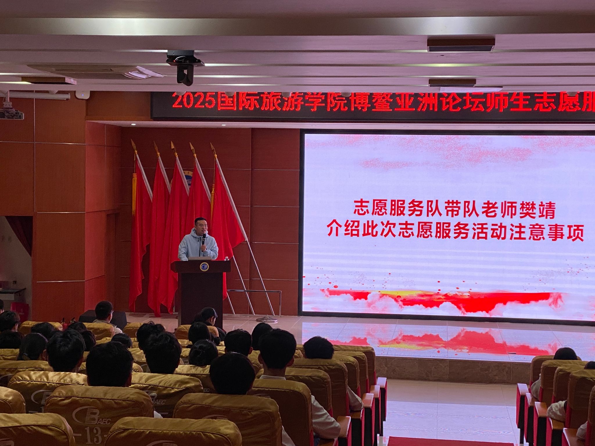 2025年3月18日下午,beats365官方唯一入口在经贸宾馆报告厅隆重举行2025年博鳌亚洲论坛师生志愿服务队出征仪式。党总支副书记刘萍男、全体辅导员以及即将奔赴博鳌亚洲论坛志愿服务一线的123名志愿者到场参会,会议由王智琳主持。