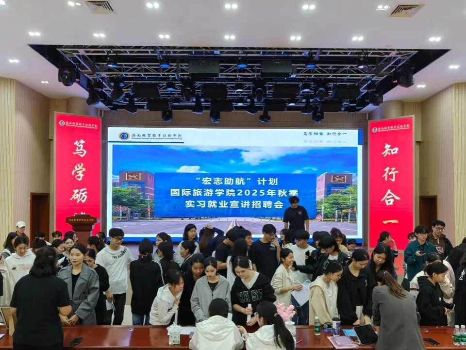 本次宣讲会精准聚焦旅游酒店及文旅行业发展趋势,特邀中免(海口)国际免税城、三亚海棠湾亚特兰蒂斯酒店、浙江乌镇集团等 7 家行业标杆企业参会。各企业代表结合自身特色,通过企业介绍、项目展示,全面呈现发展前景与文化底蕴,并详细解读实习岗位、薪资待遇、工作环境等信息,现场解答员工提问。