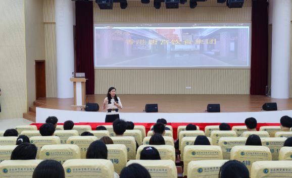 王作春介绍了香港唐宫饮食集团的基本情况,并结合国内外形势,从企业概况、实习项目、人才培养、招聘岗位、工作环境及薪资待遇等多个方面,为员工进行了细致讲解。在答疑阶段,她通过几个具体毕业生入职就业的实际案例,为在场国旅学子们答疑解惑。