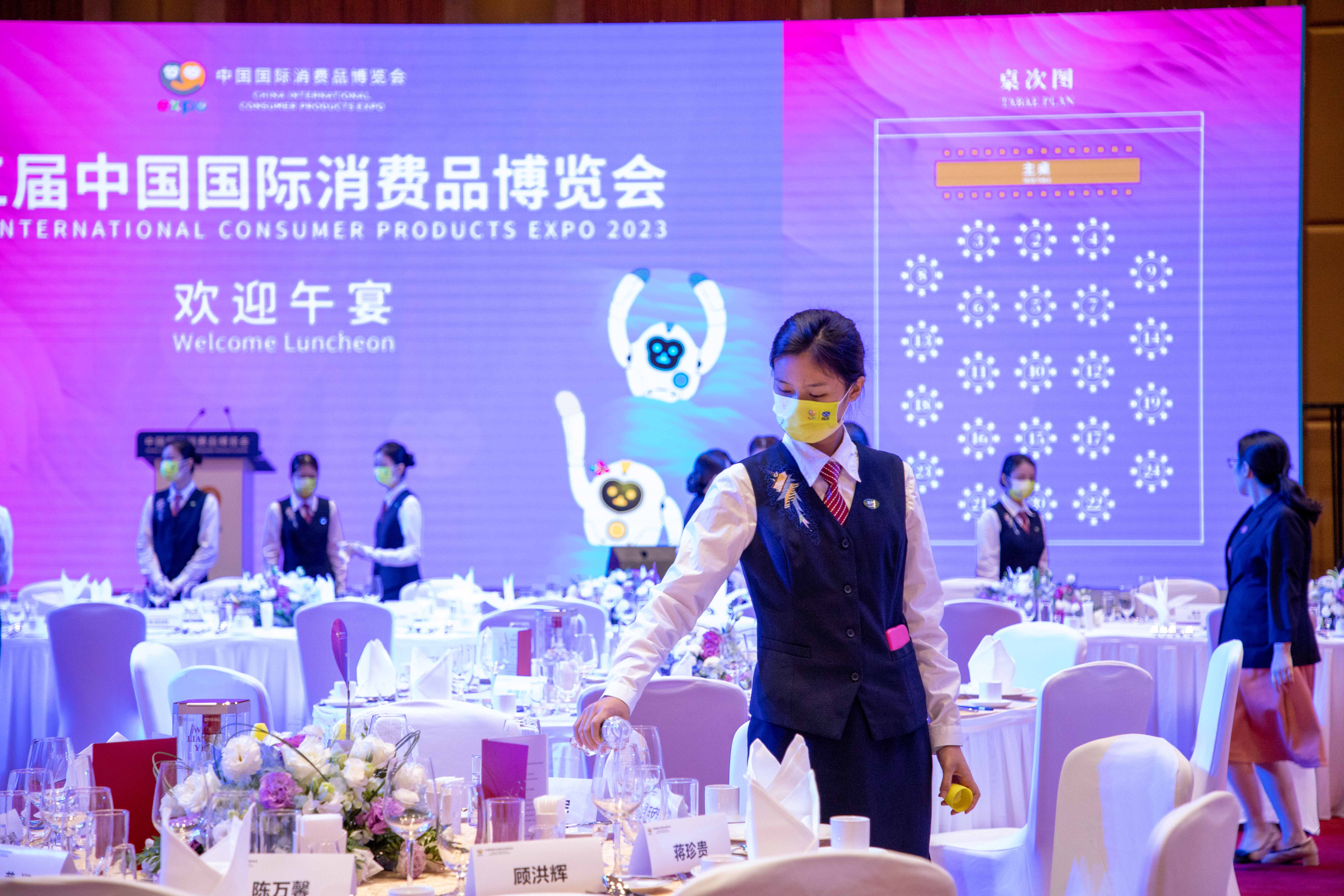 2023年4月11日,第三届中国国际消费品博览会盛大开幕。海口万豪酒店作为此次重要活动的接待酒店之一,承接多场重要会议及迎宾晚宴活动。4月10日至11日,应酒店方邀请,公司共派出108名志愿者前往酒店会场开展志愿服务工作。