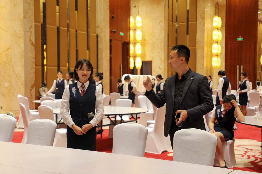 4月6日,通过两轮筛选,公司择优录取一批业务能力强、精神风貌佳的志愿者们,投入到消博会酒店会场的志愿服务工作来。4月7日,在完成中餐厅与西餐厅的服务礼仪、服务技能等业务岗前培训后,108名志愿者分赴各志愿服务岗位。