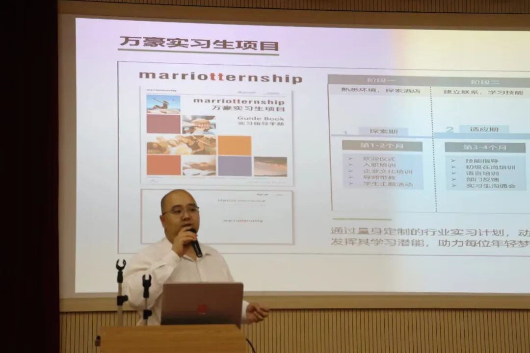 宣讲会邀请到了海南富力海洋欢乐世界、富力海洋欢乐世界凯越酒店、陵水清水湾莱佛士度假酒店、万宁石梅湾威斯汀度假酒店、海南槟榔谷黎苗族文化旅游区、三亚泰康之家度假酒店等6家企业。宣讲会上,6家企业依次介绍了各自的企业概况以及企业特色,通过节目表演、现场提问等互动环节为同学们留下了各自企业的独特印象。同时,6家企业为到场同学介绍了各自企业的实习岗位、薪资待遇以及工作环境,并对同学的提问进行一一解答。