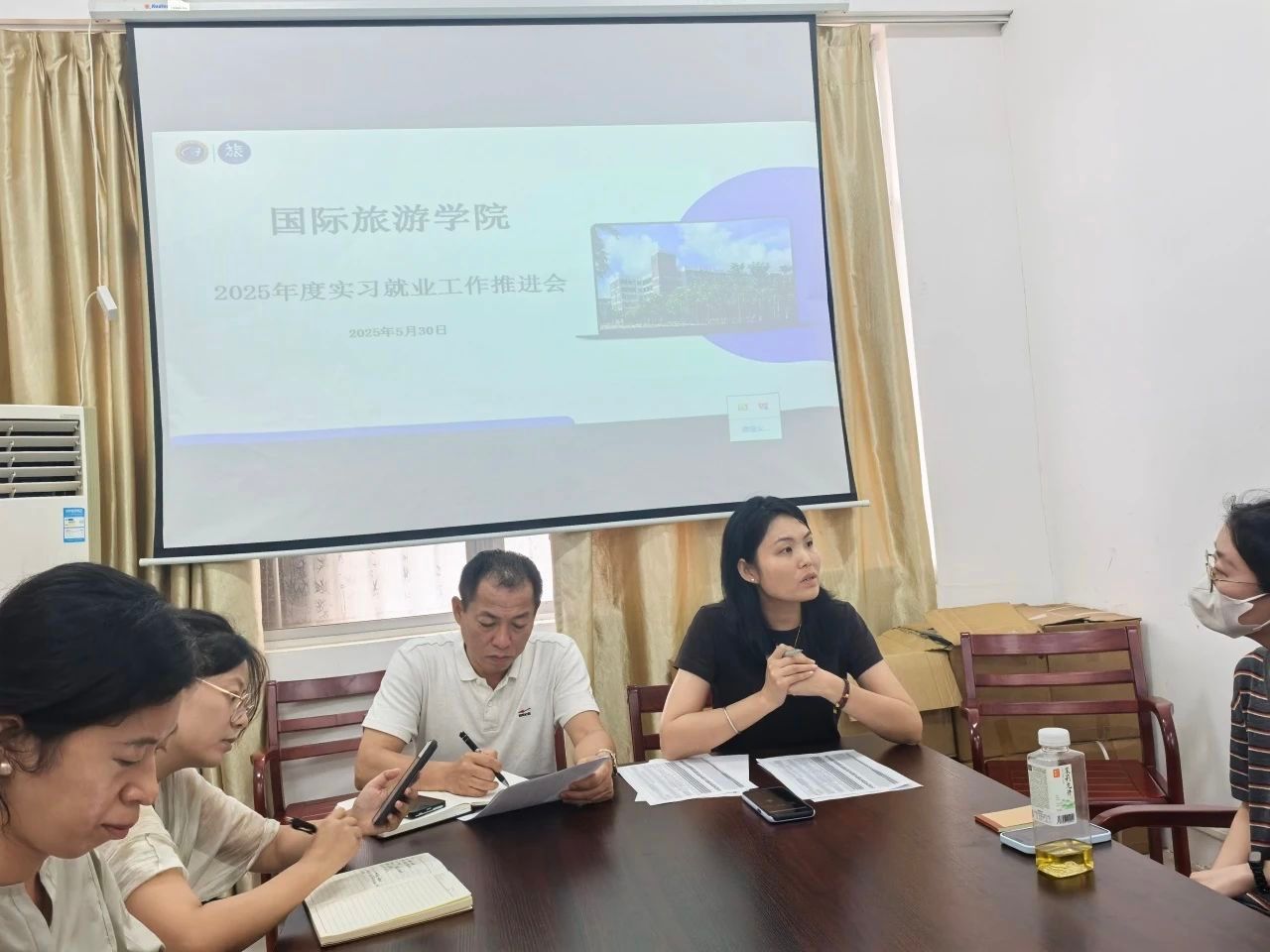 为扎实推进员工实习就业工作,5月30日上午,2025年度实习就业工作推进会在2-210顺利召开。党总支书记孙金、党总支副书记刘萍男及全体实习就业指导老师出席会议。