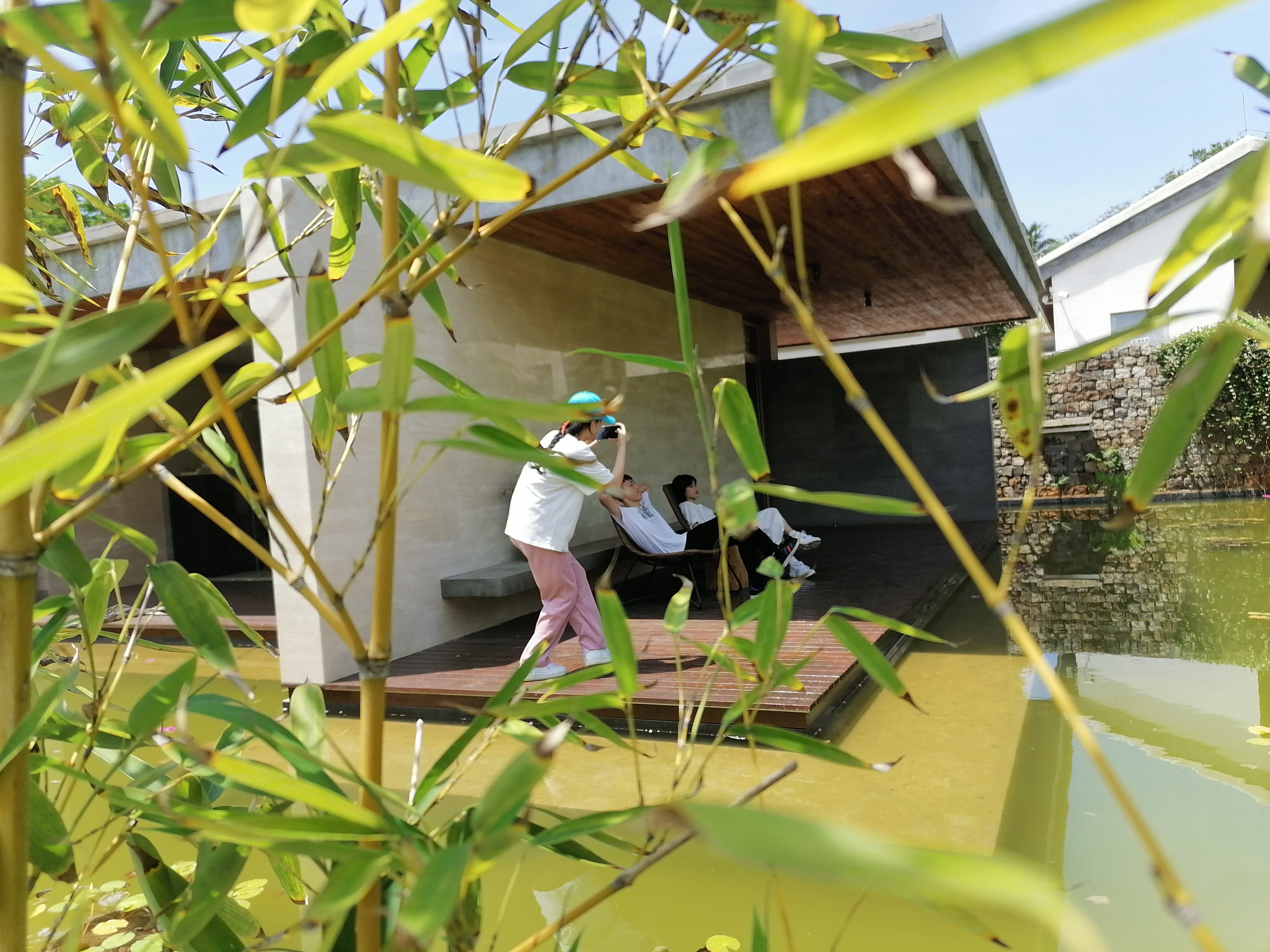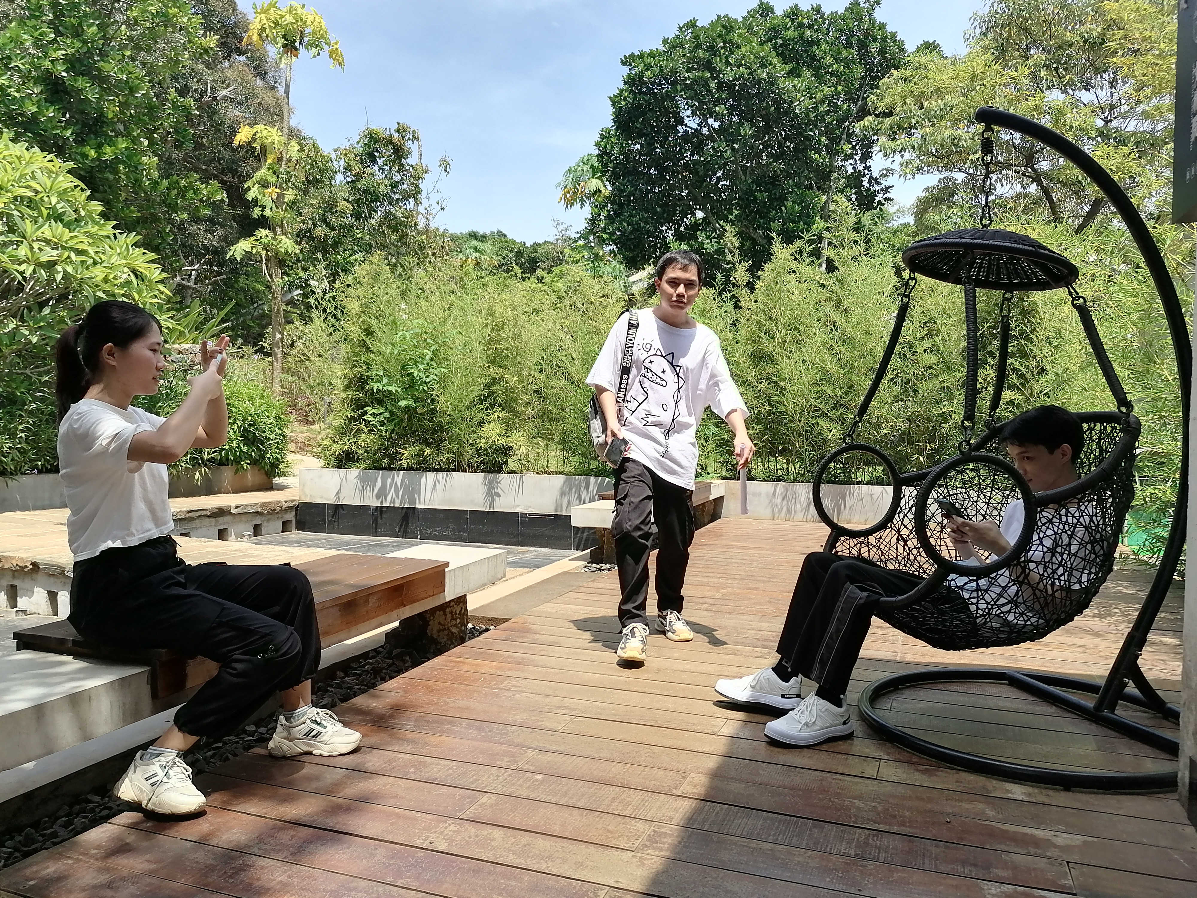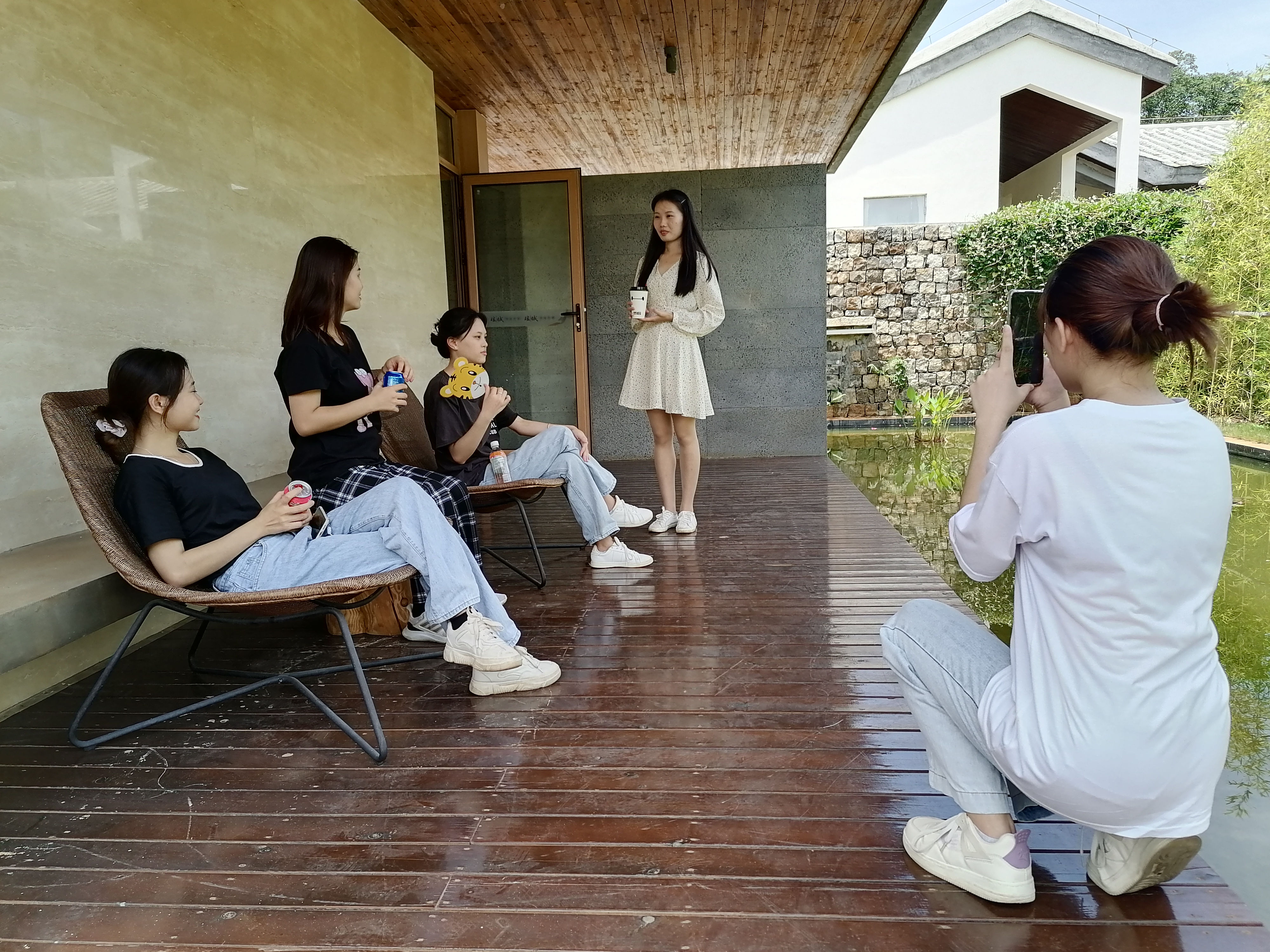 员工在海控瑶城的优美环境中拍摄剧情短片