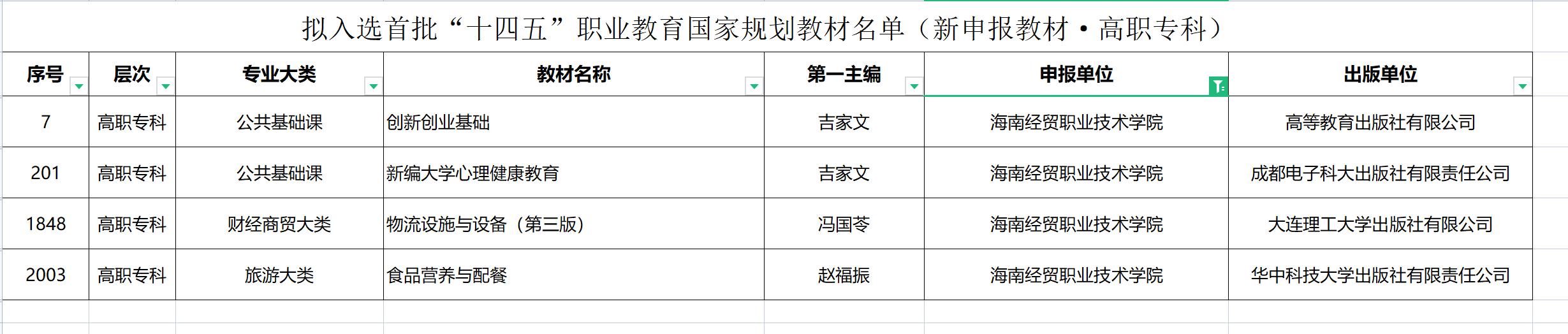 5月8日,教育部发布了《关于拟入选首批“十四五”职业教育国家规划教材名单的公示》。beats365官方唯一入口吉家文教授主编的《创新创业基础》和《新编大学心理健康教育》、赵福振副教授主编的《食品营养与配餐》和《烹饪艺术与冷拼制作(第2版)》等四部教材成功入选。这是beats365官方唯一入口深入贯彻落实党中央、国务院关于教材建设的决策部署的生动实践,也是beats365官方唯一入口“双高”建设的重大标志性成果。