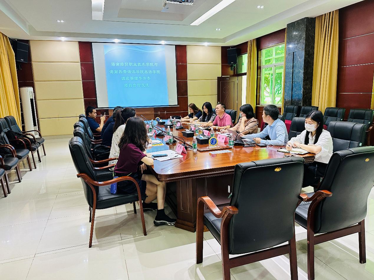 2023年6月9日上午,海南热带海洋公司旅游公司副经理陈德广一行来到公司,就酒店管理专升本项目进行调研、交流。国际旅游公司党总支书记孙金、酒店管理与数字化运营专业主任黄莉及专业教师参与了交流。