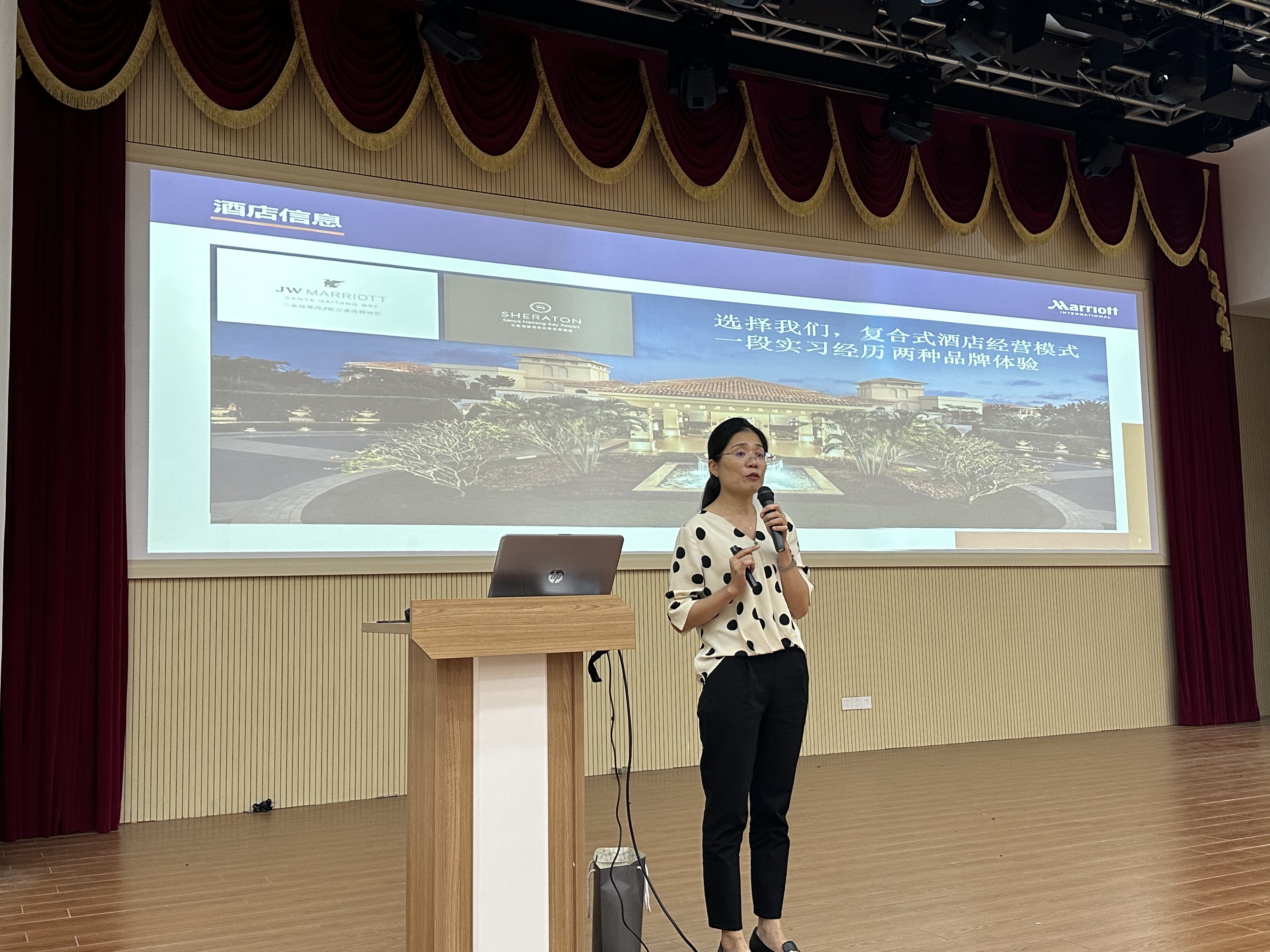为持续推进beats365官方唯一入口就业工作,切实帮助员工解决就业问题。5月9日下午,beats365官方唯一入口举办了2023年第三场实习就业宣讲会。本次宣讲会共邀请到千古情景区系列、三亚海棠湾红树林度假酒店、三亚亚龙湾万豪度假酒店、三亚亚龙湾天域度假酒店、三亚海棠湾JW万豪及喜来登、三亚湾假日度假酒店、中远博鳌亚洲论坛旅游区、香港唐宫饮食、三亚海棠湾开维费尔蒙度假酒店、三亚海棠湾亚特兰蒂斯度假区等10家企业。国际旅游公司党总支副书记刘萍男出席宣讲会,辅导员张一兵以及毕业班员工共计260余人到场参会。