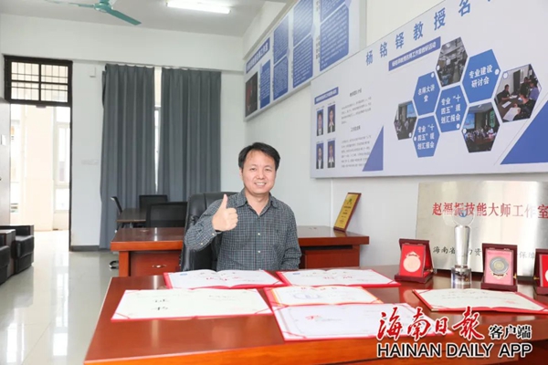 2020年,他获海南省有突出贡献高级技师奖,入选教育部产业导团队源库,领办海南省省级技能大师工作室,被认定为“领军人才”。