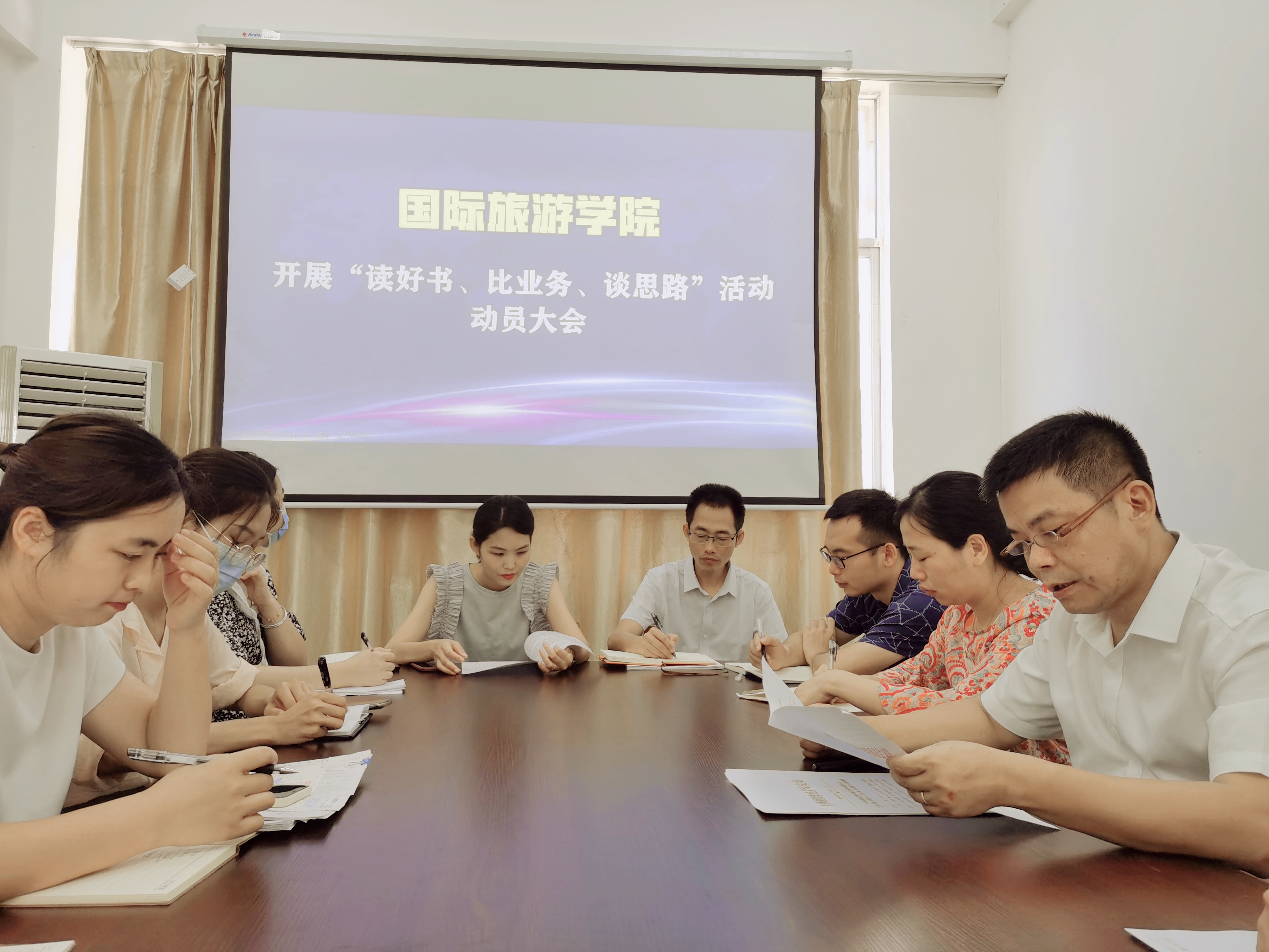 会上,符胜传达了《中共海南经贸职业技术委员会关于开展“读好书、比业务、谈思路”活动的通知》的文件精神。他要求:全体教职工要充分认识“读好书、比业务、谈思路”活动的重要意义,树牢终身学习理念,统筹安排时间,立足本职岗位,自觉参与读书活动,熟练掌握业务知识,提升工作能力。每位干部要结合双高建设和申办本科教育等工作,建言献策,分享个人在业务实践和一线锻炼的心得体会和经验做法。