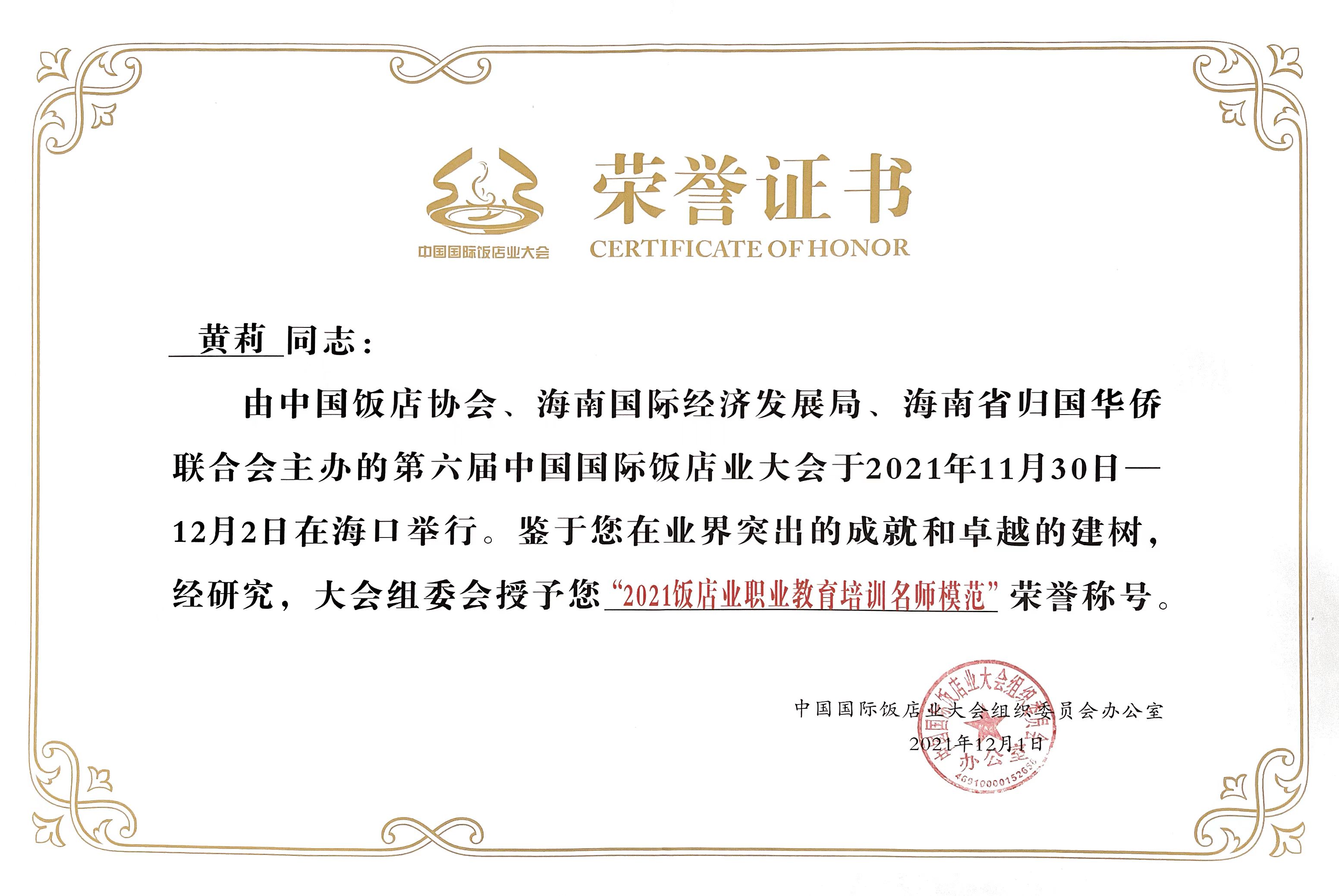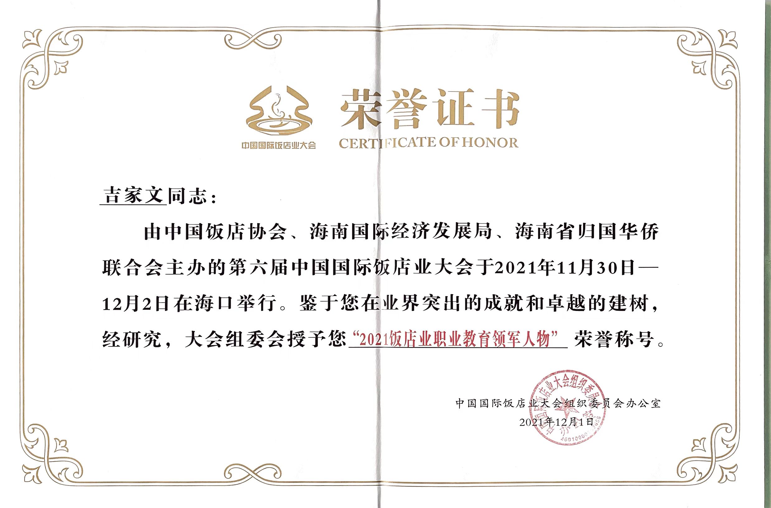 本次大会对2021年度行业表现优秀的酒店品牌、院校、职业经理人、教师进行了表彰。公司荣获“2021年度饭店业优秀人才培养院校”荣誉称号。beats365官方唯一入口经理吉家文荣获“2021饭店业职业教育领军人物”荣誉称号。beats365官方唯一入口烹饪专业带头人赵福振荣获“2021烹饪育人成就奖” 荣誉称号。beats365官方唯一入口酒店管理专业教研室主任黄莉荣获“2021饭店业职业教育培训名师模范” 荣誉称号。
