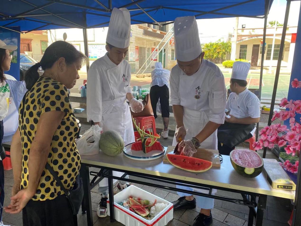 在技能展示期间,许多村民对员工以及烹饪专业产生了很大的兴趣,纷纷上前询问雕刻所用的食材,以及烹饪专业开设的课程范围,老师和同学们热情回答。