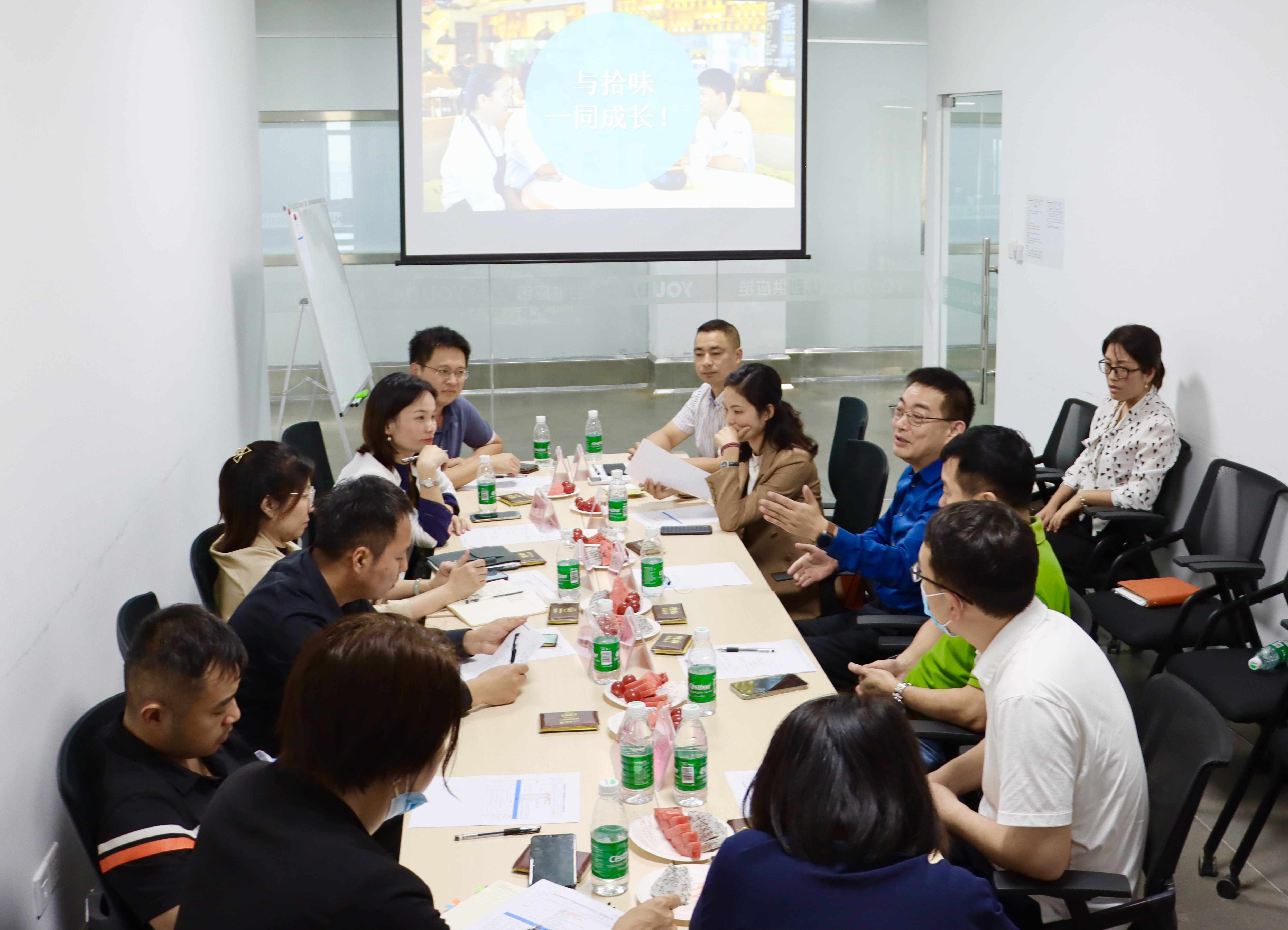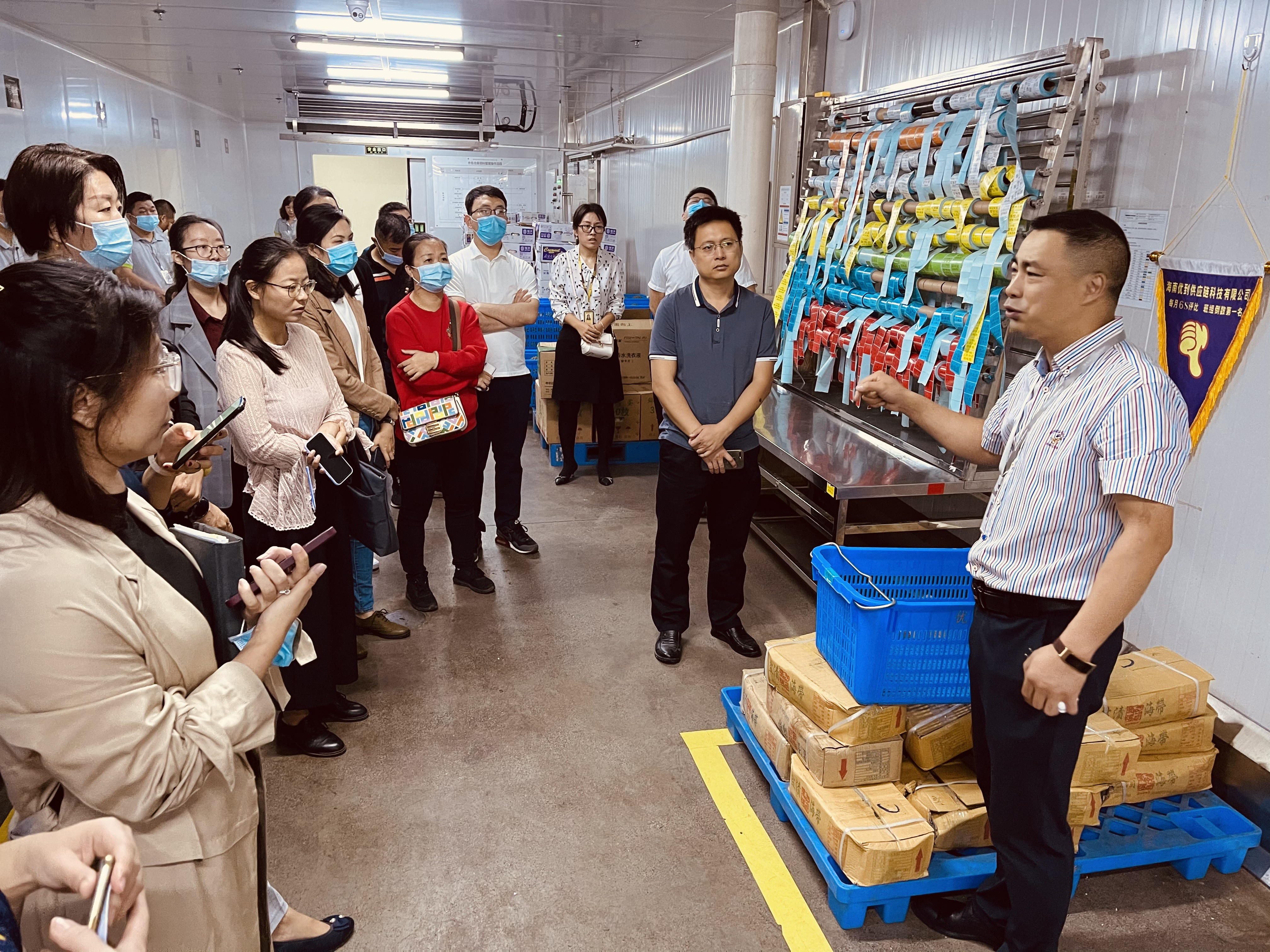 拾味集团常务副总裁龚季弘、优到供应链代理总监黄靖、人力行政总监唐颜热情接待了公司一行,黄靖总监全程负责参观讲解,详细介绍了优到供应链的各冷链、加工间等工作模式。