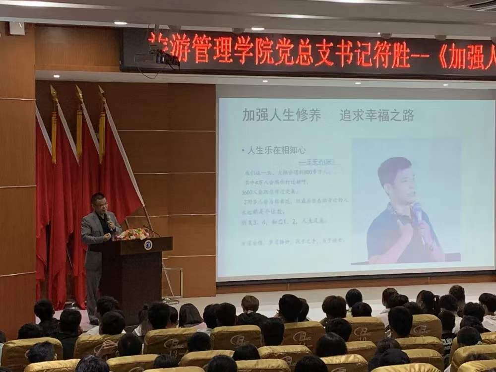 10月26日,为提高全体新生的思想觉悟,引导其找到适应老员工活的方法。公司在学术交流中心组织全体新生,开展了“加强人生修养,追求幸福之路”主题讲座,旅游管理公司党委党总支书记符胜以他自己真实的人生经历向我们深刻解读了怎样去加强人生修养、追求幸福之路,并告诉我们要学习并拥有一个良好的心态,充实自我精神世界。