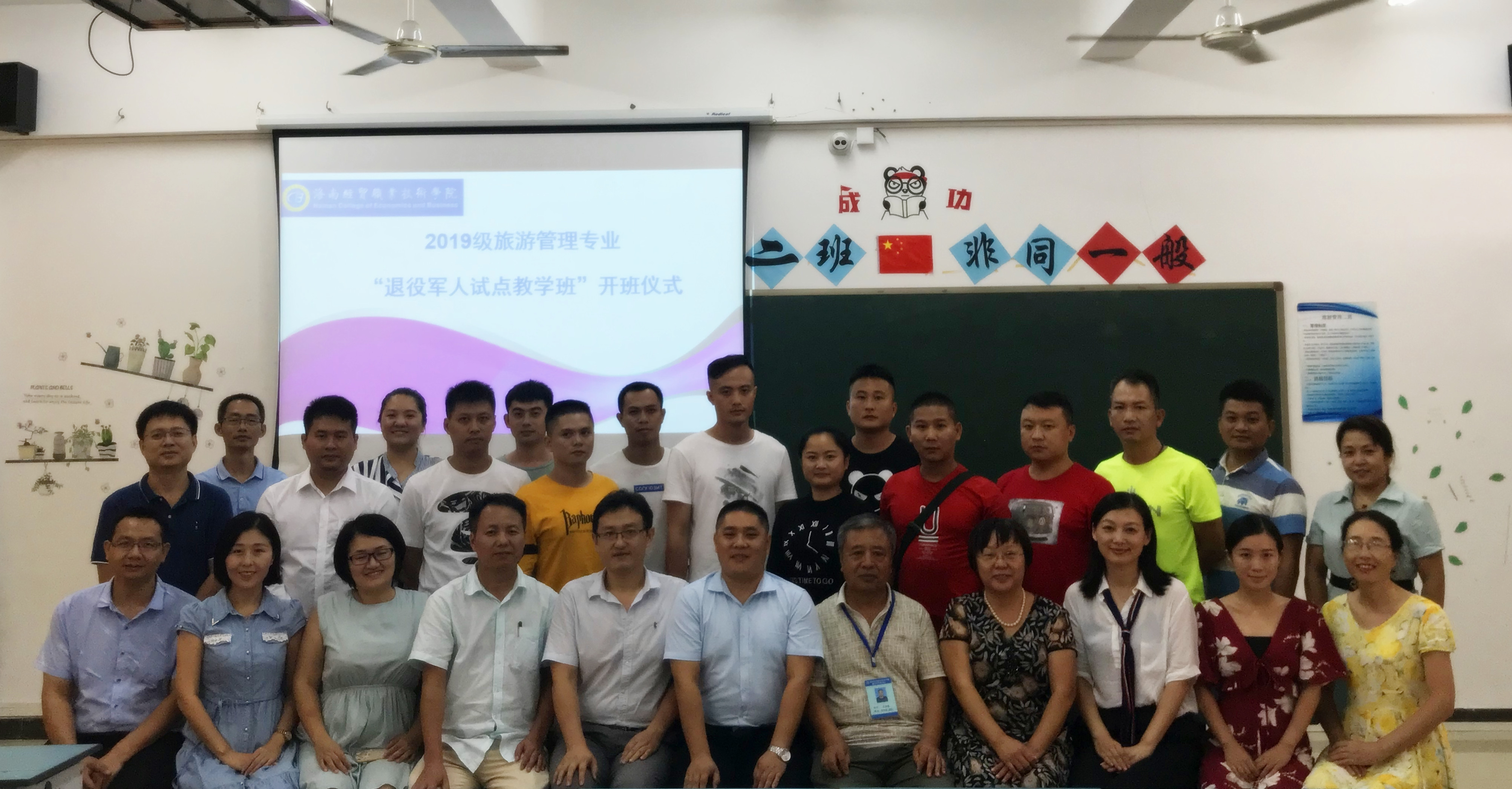 旅游管理专业“退役军人”教学班是落实李克强总理2019年3月27日在365官网体育考察工作时的重要指示精神:即公司不光招收应届高中毕业生,还要改革完善考试招生办法,多招收退役军人、下岗职工和农民工。该班采用教学点授课、送教上门、弹性学制、学分银行,是依据公司“半工半读”人才培养的标准不降、模式多元、修业灵活等原则组建的新型人才培养班级。