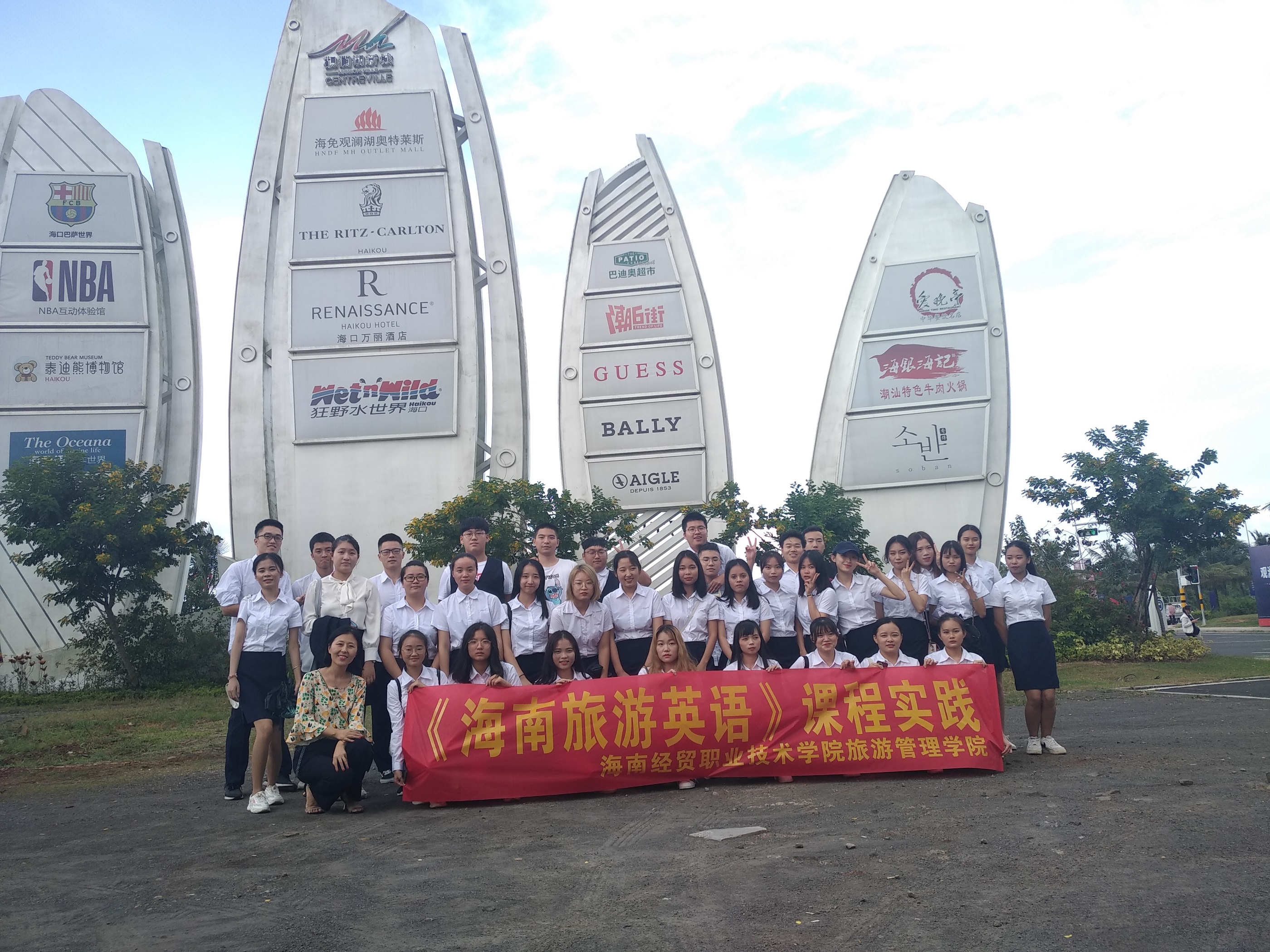 (旅游管理公司报道)为了推动2019年365官网体育旅游管理公司骨干专业建设项目顺利完成,有效推动教学改革,2019年10月8日下午,在旅游管理专业教师金丹的带领下, 2018级旅管学徒制1班全体同学开展《海南旅游英语》课程实践。此次课程实践的地点是海口观澜度假区,实践教学的目的是让同学们通过实地考察观澜湖度假区形成旅游线路安排并用用英语对该度假区进行讲解。