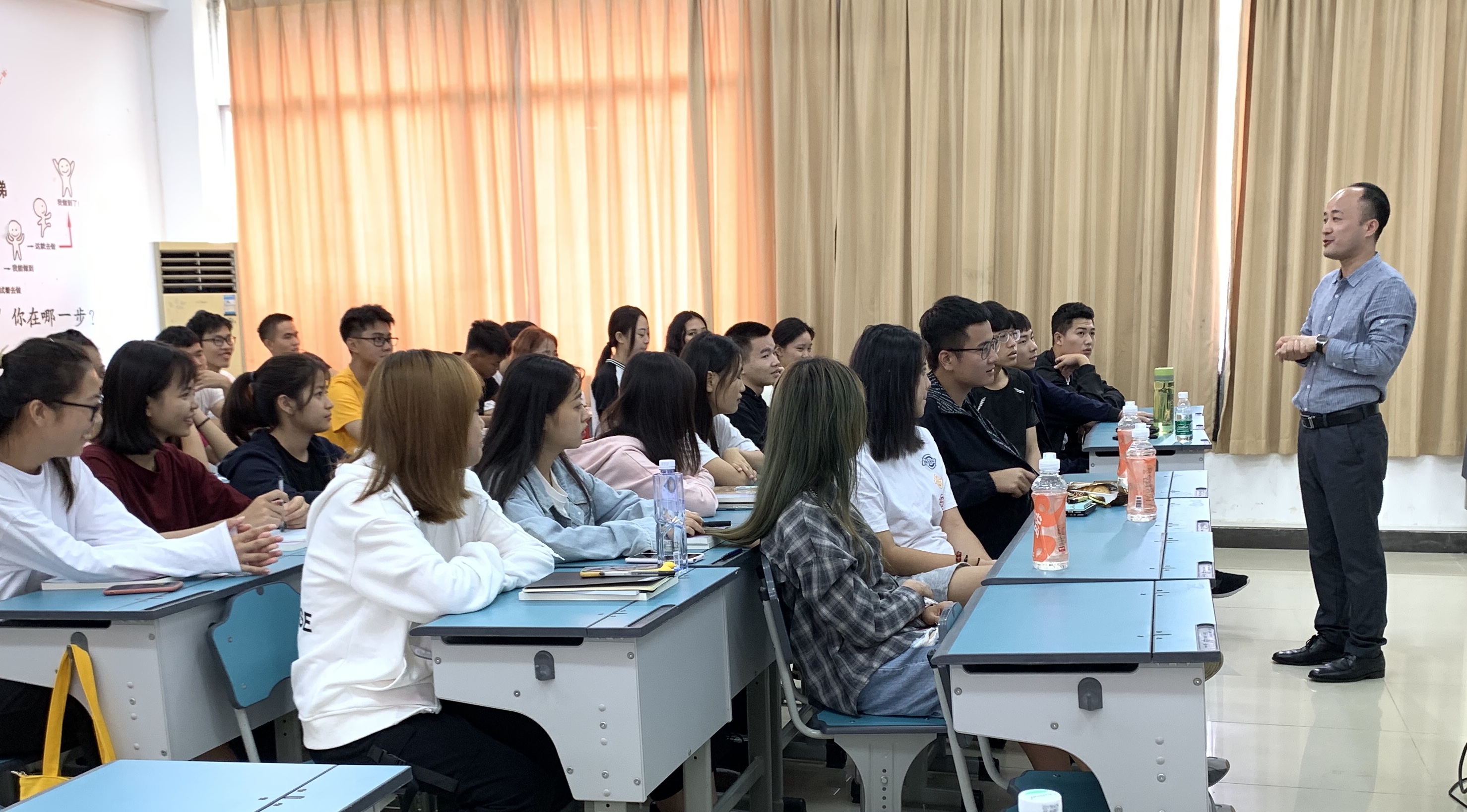 商旭总监介绍了旅游行业中的酒店行业概况以及从事酒店行业所需具备的技能、正确的态度等,并以自身的丰富经历激励同学们,用自己的职业生涯故事告诉学弟学妹们人一定要努力,努力才会有回报,可以遗憾,但不能后悔。