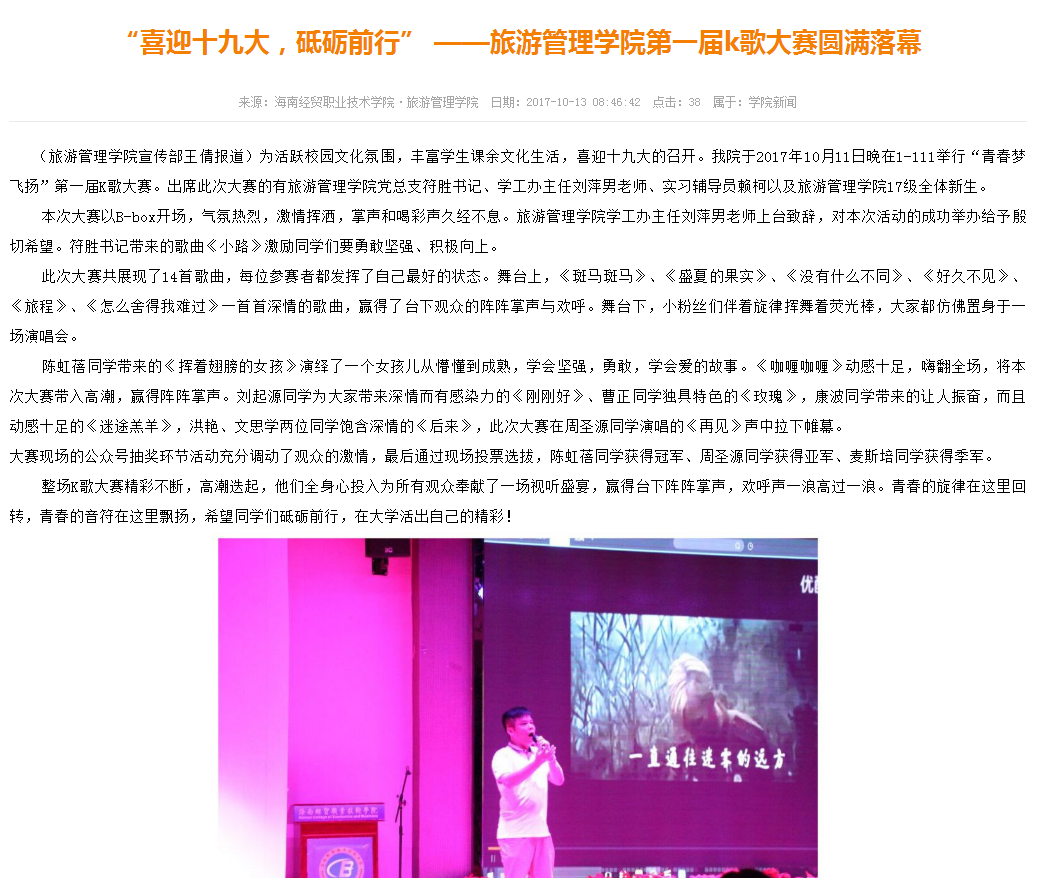 “喜迎十九大,砥砺前行” ——旅游管理公司第一届k歌大赛圆满落幕