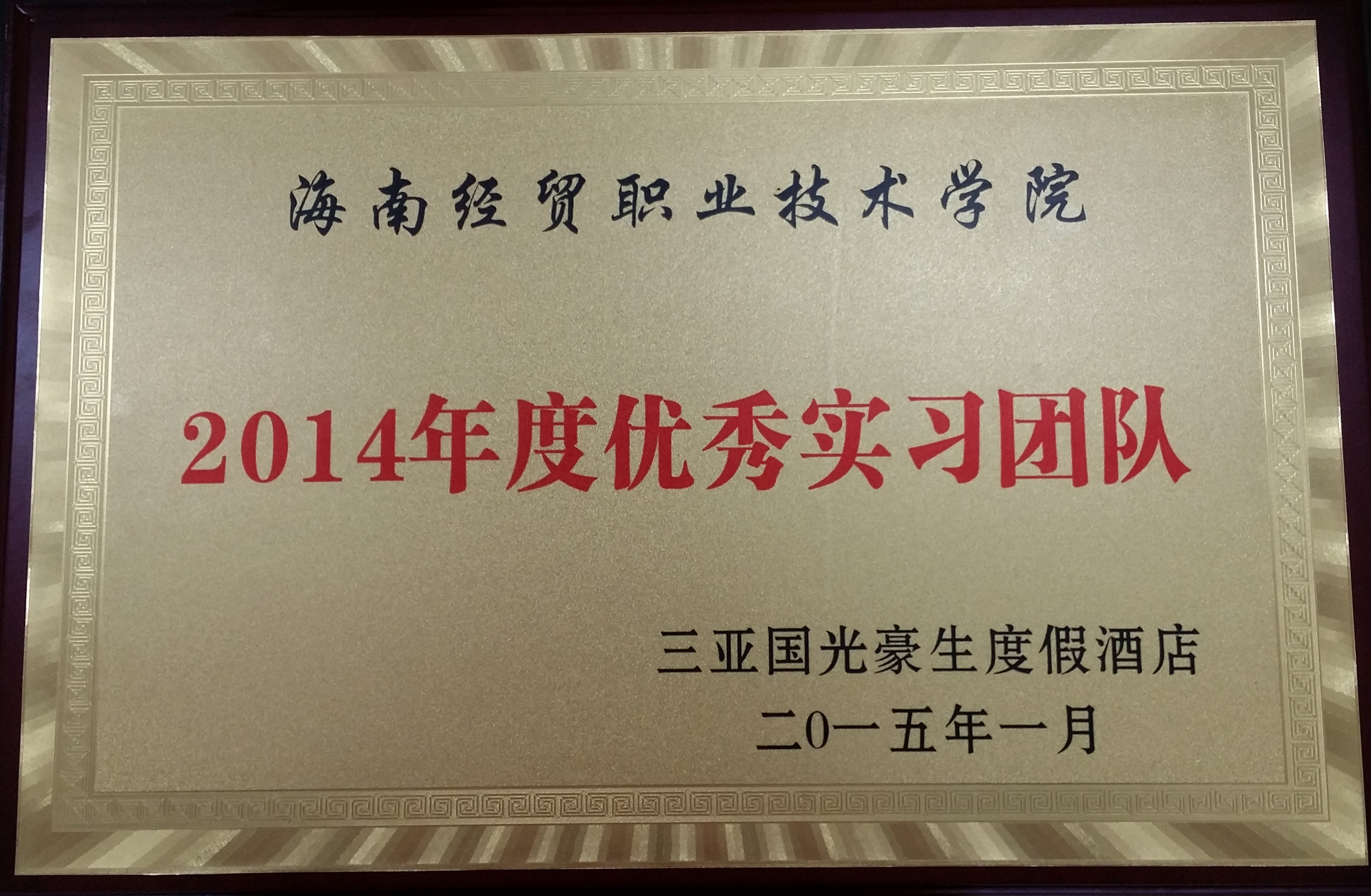 自2014年7月份开始,先后有8个班级近300人次员工参加了工学结合、顶岗实习,坚持在岗位上锻炼自己,逐步地完成学习任务。在实习过程中,同学们能按照实习要求,立足一线岗位,增强实践应用技能,提高自身综合素质,扎实开展顶岗实习,相关实习带队教师和实习报告指导老师能积极联系和精心指导,为不断探索成功的实习模式积累宝贵经验。 为了表示对以往校企合作在联合培养人才方面所取得成绩的充分肯定,2015年3月,三亚国光豪生度假酒店向我系赠送“2014年度优秀实习团队”奖牌,赞扬了我系实习实践工作成果。三亚国光豪生度假酒店是我系最早建立合作关系的校企合作单位之一,双方已有近10年的合作历史。