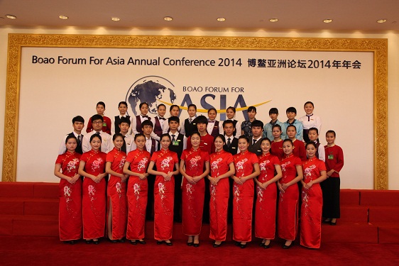 (旅游管理系刘萍男讯)博鳌亚洲论坛2014年年会于4月8日-11日在海南省琼海市博鳌镇博鳌亚洲论坛大酒店如期召开。为确保年会的顺利进行,我系受博鳌亚洲论坛大酒店之邀,特派出37名志愿者(服务志愿者27名,礼仪志愿者10名)到博鳌亚洲论坛大酒店进行年会期间的志愿服务工作。