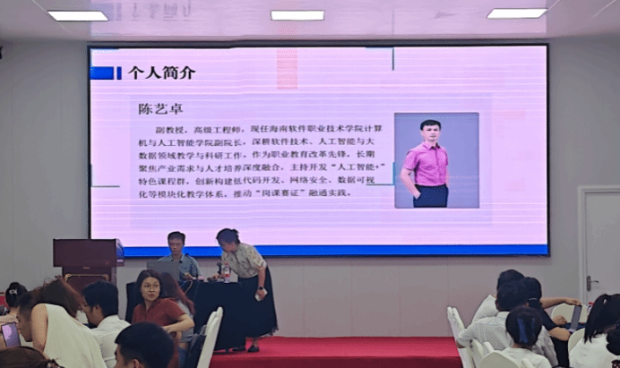 授课环节中,青岛酒店管理职业技术公司庞阳博士以“职业院校教学标准体系的构建与应用”为主题进行了专题讲解,从“国家-省级-校本”三个层面深化了公司们的标准体系认知。天津职业大学魏娜教授带来了关于“AI+新形态资源库重塑人才培养新模式”的精彩讲座,帮助学员掌握最新的AI技术应用与新型资源开发方法。海南软件职业技术公司高茹教授从历届职业教育国家在线精品课程申报角度,围绕教学目标等多个方面为学员们开展教学设计提供全新视角。海南大学研究员丁继红博士以“AI技术在高职教学中的创新应用全景及工作坊”为主题,通过“理论+实操”的生动方式,深入的讨论了如何有效运用AI工具进行高效学习和工作实践。