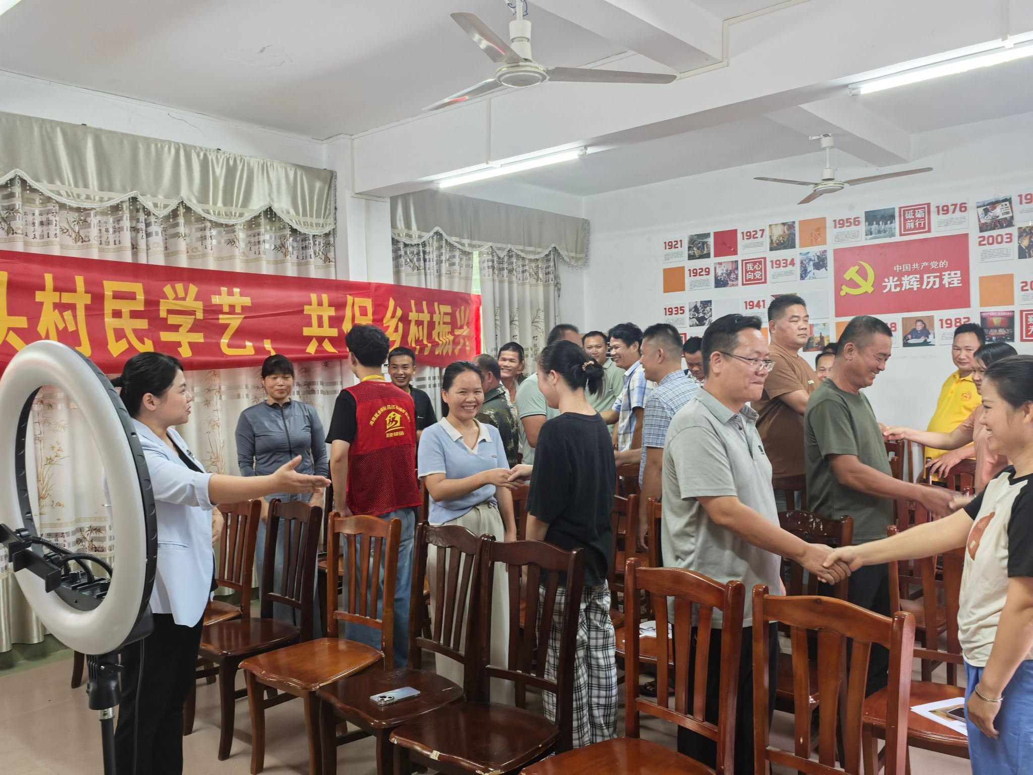 培训会上,林文超老师聚焦乡村旅游、服务业等场景需求,围绕沟通礼仪规范、服务标准流程两大核心内容,通过 “情景模拟 + 现场实操” 的形式,手把手指导村民调整仪容仪表、规范沟通话术,帮助村民快速提升个人形象与服务业适配能力,为参与乡村旅游服务打下基础。