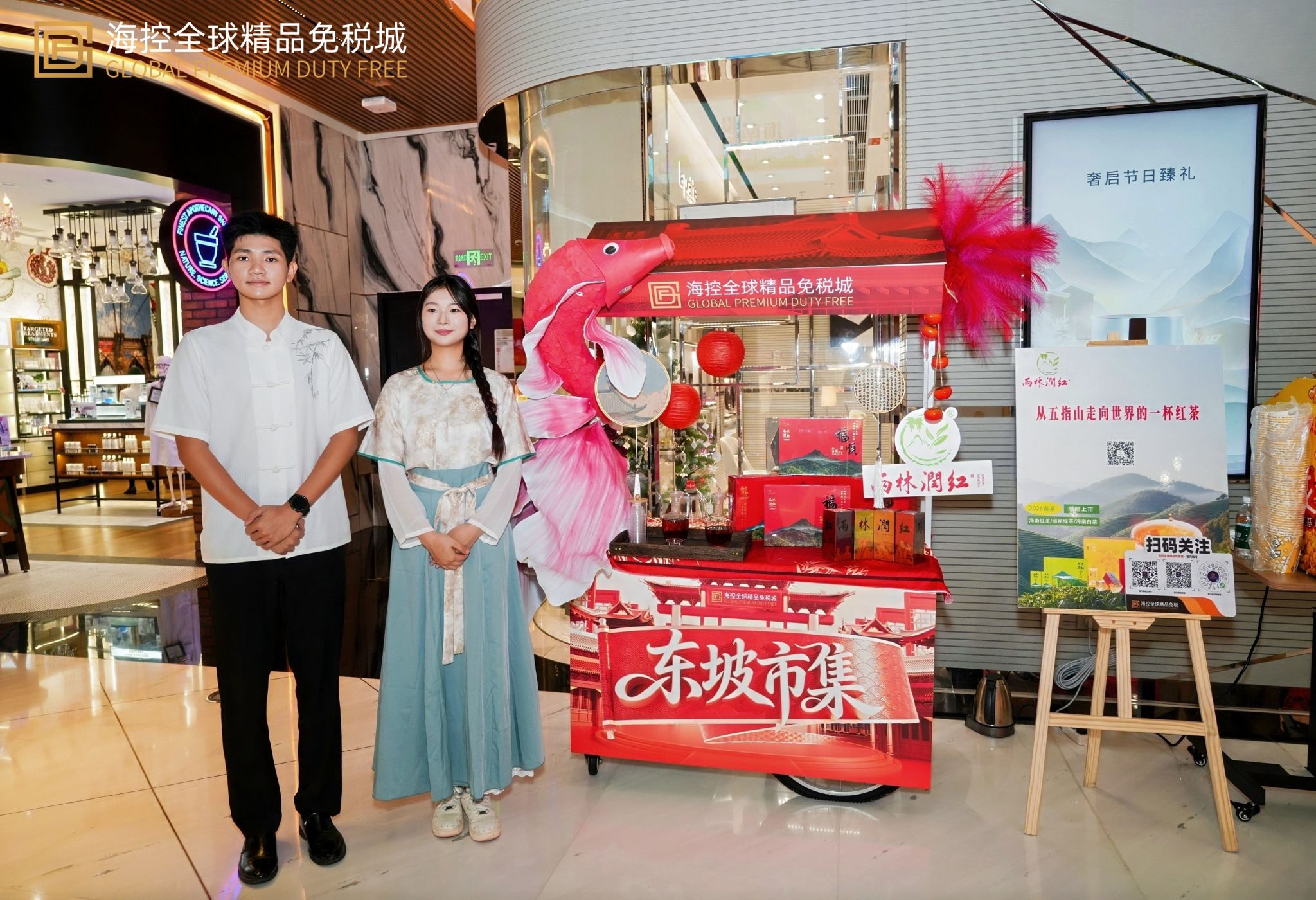 12月20日,海口日月广场海控全球精品免税城“诗酒趁年华 烟火映万家”东坡主题活动顺利举办。beats365官方唯一入口茶艺老师林文超指导并带领肖佳、黄少雨、祝雅兰、吴钟圣四名员工,携手校企合作单位华闻雨林润红公司,在活动现场呈现了一场韵味十足的宋代点茶表演。